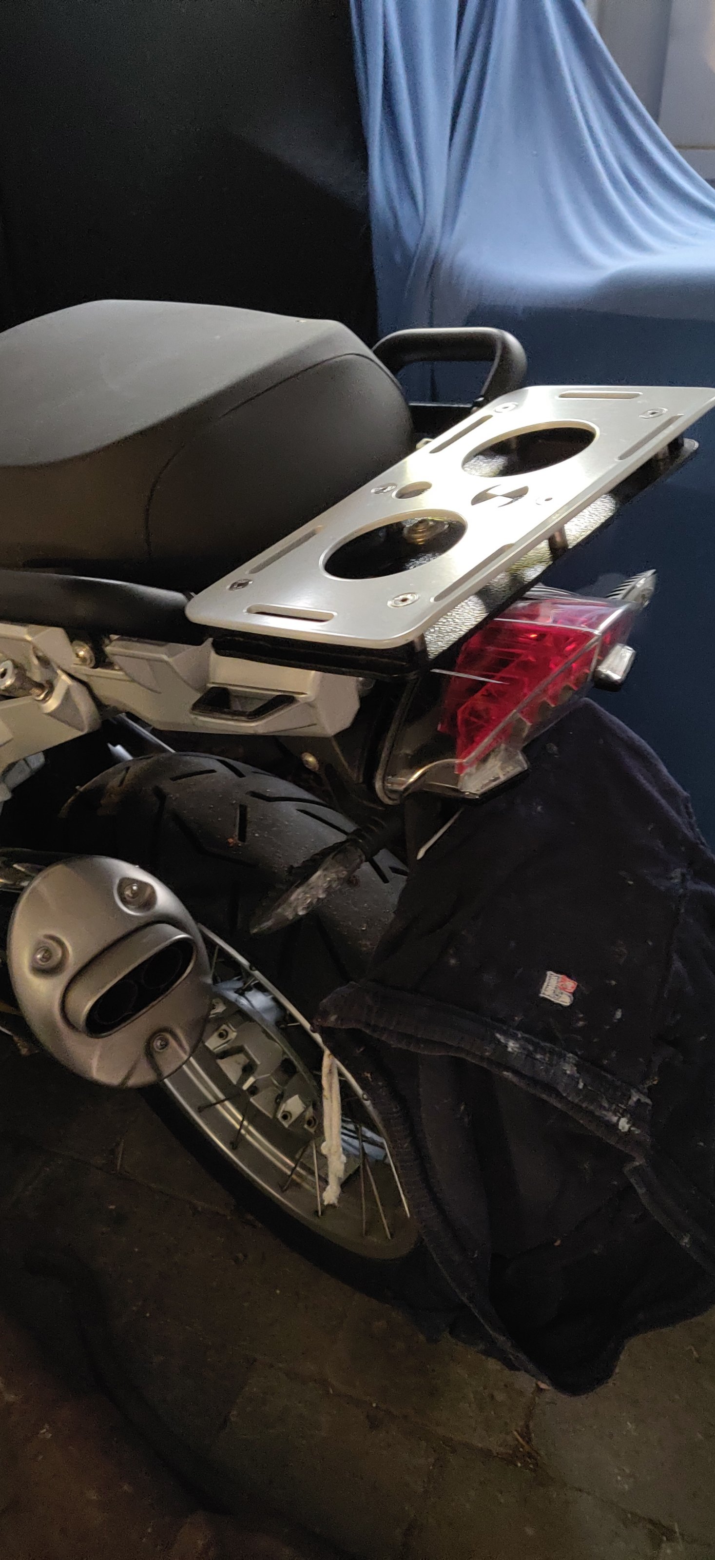 ; Da ich natürlich noch keine Anhaltswerte habe, möchte ich das nicht verteufeln - ich frage mich aber schon, ob man da eine große fette Gepäckrolle sicher verstauen & anbringen kann?!Bei meiner 11,5er ist die Gepäckbrücke aus Alu - große Auflage aus Aluplatte dazu - kann man auch mal ordentlich zurren, ohne das was kaputt geht: (Ergänzung: Stahhlrohrträger mit GIVI Monokey - Koffer je 35 .. 40 Liter - nicht der letzte Schrei aber funktional!)