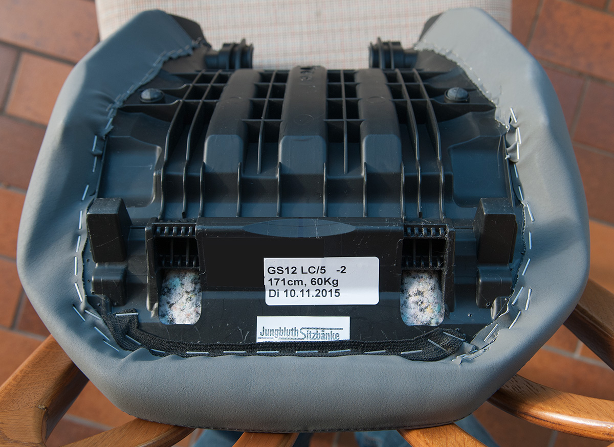 2. Beim Sattler meines Vertrauens mein Problem besprochen und die original Sitzbank 2 cm aufpolstern und 4 cm verbreitern lassen. Einen härteren Bezug gewählt.