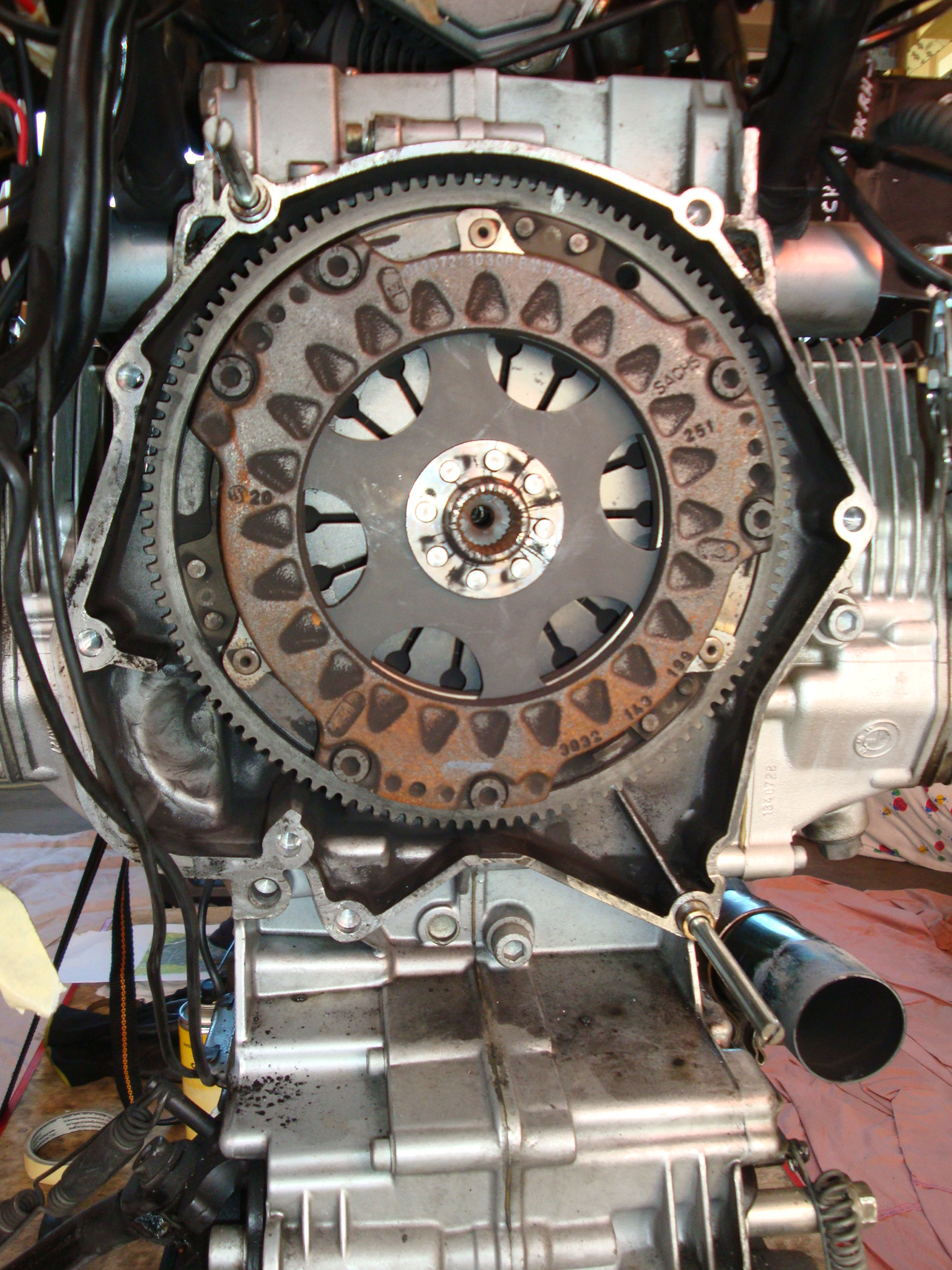Ich vermute, daß das Ausrücklager und/ oder eine Feder das Zeitliche gesegnet hat. Nachdem die Gute eben auch 111´km gelaufen ist, möchte ich auch gleich die Kupplung nachsehen/ ersetzen.