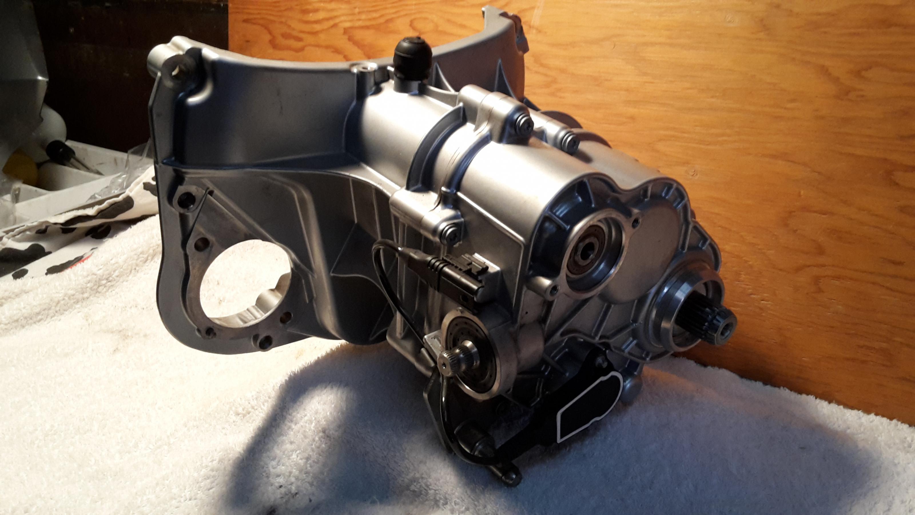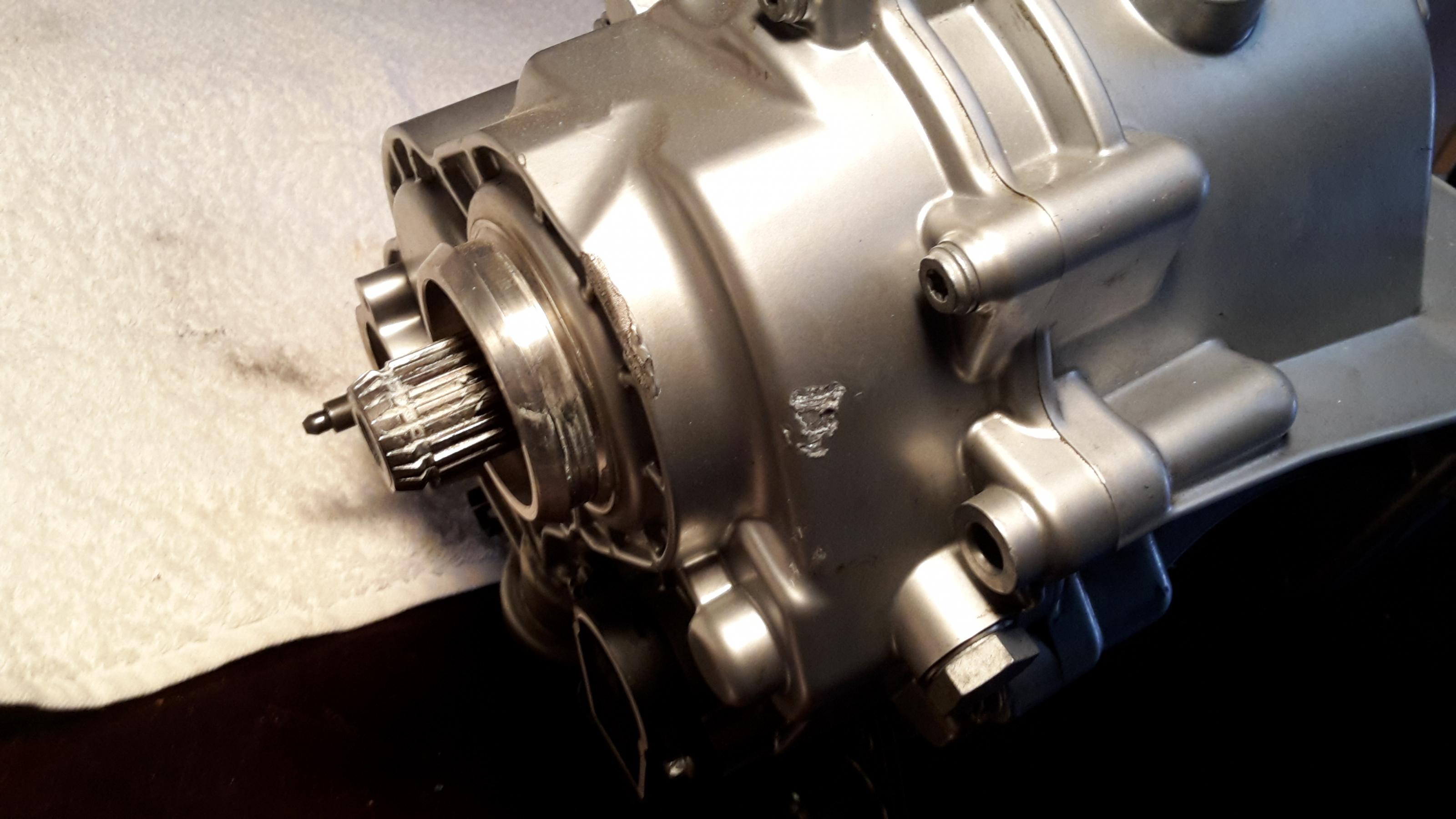 Ich hatte dieses Getriebe als Ersatz für das defekte meiner 2004er R 1200 GS gekauft, leider passt es dort nicht wegen veränderter Maße der Abtriebswelle. Das Getriebe stammt nach Angaben des Vorbesitzers aus einer R 1200 GS Bj. 2009 (Getriebecode SAA) und hat ca 8900 km Laufleistung. Beim Ausbau durch den Vorbesitzer wurde leider das Gehäuse Nähe Abtriebswelle oberflächlich etwas beschädigt (s. Foto 4).