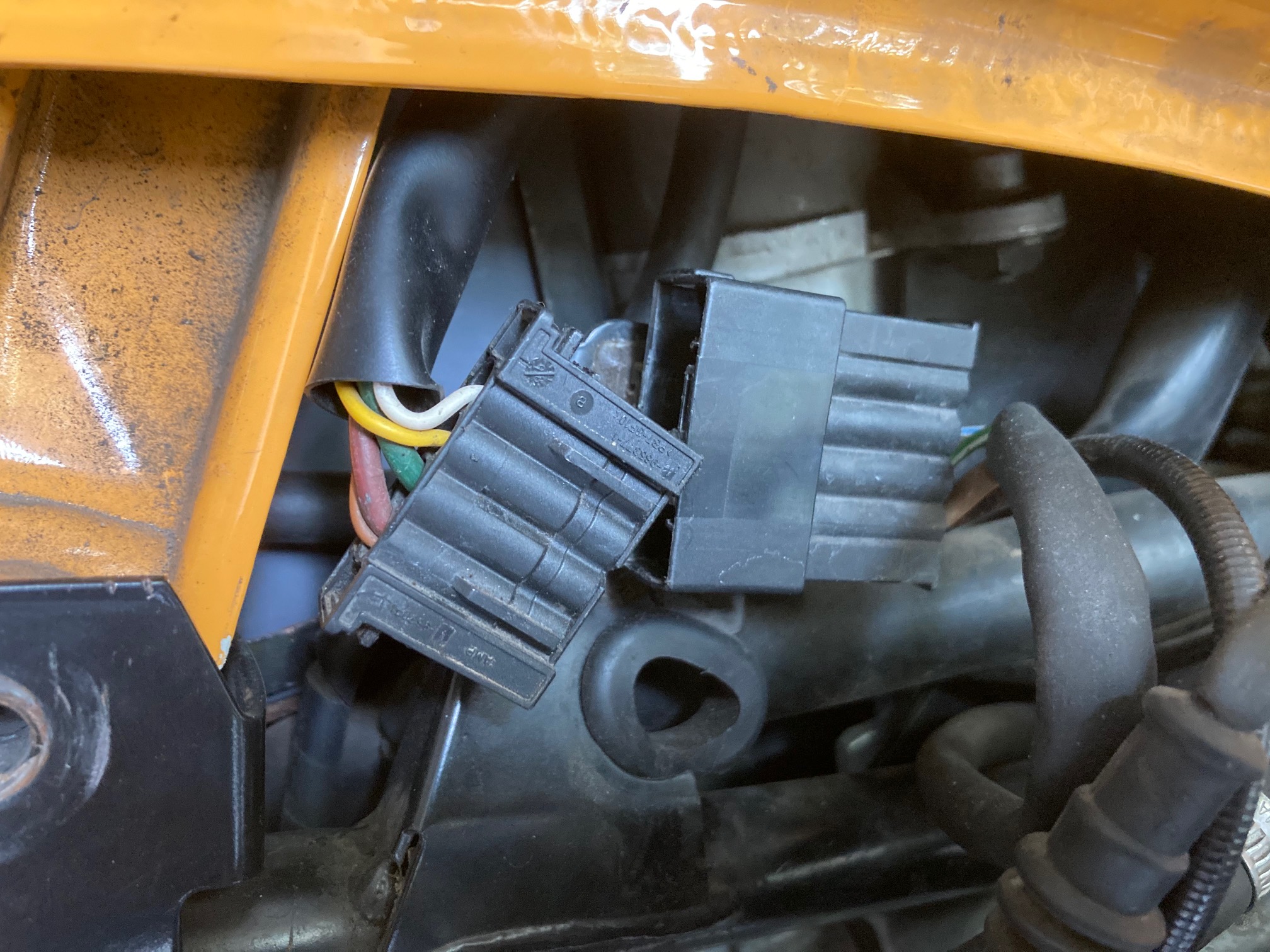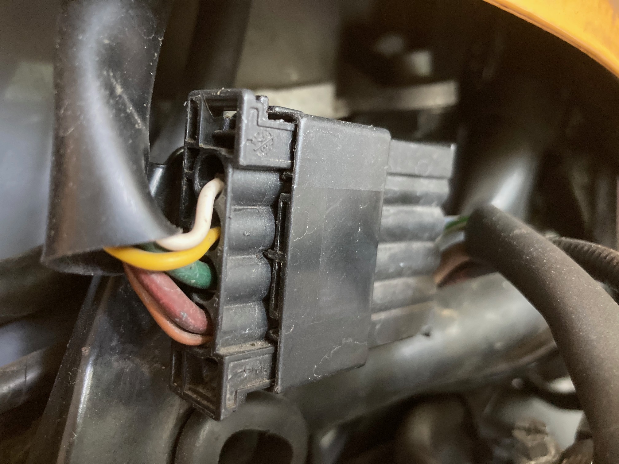 Seitenverkleidung weg und diesen blöden Stecker abgefummelt, der wird vom Gärtner ausgetauscht, ja lieber Guido, bissl Druck muss sein