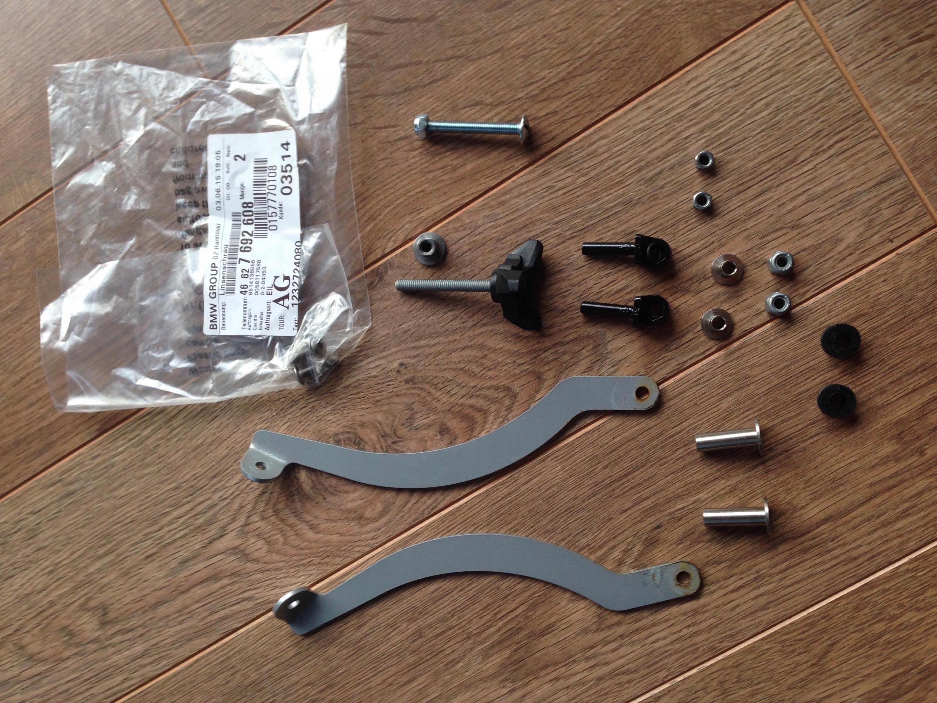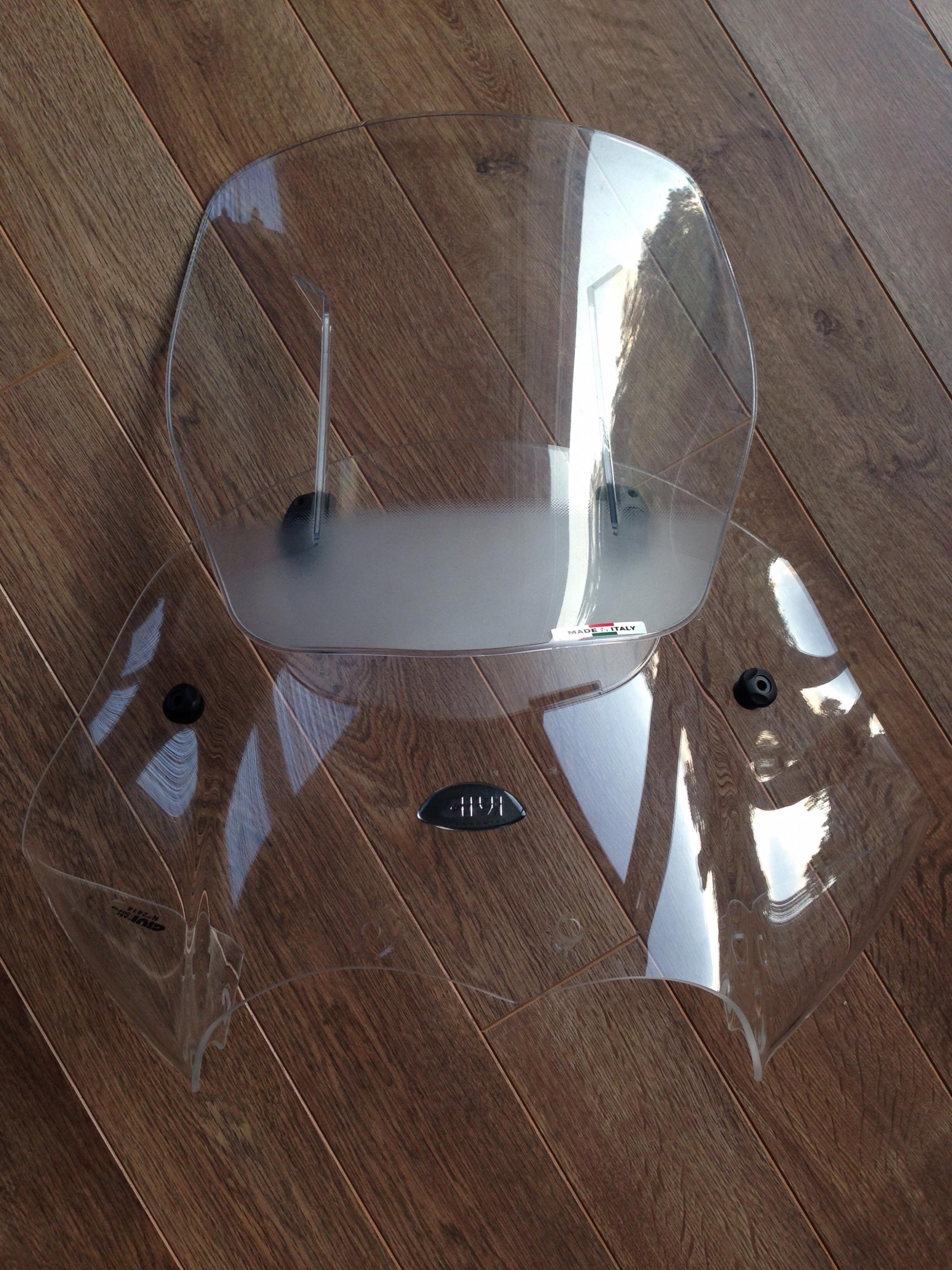 Gesamter Befestigungssatz ist dabei. Alles neu und unbenutzt (NP ca. 45€) Es fehlt lediglich eine Flügelschraube (die ist bei der originalen Scheibe für die Aretierung der Scheibenverstellung dient. Braucht man bei der Givi Scheibe nicht zwingend, da der untere Teil der Scheibe nicht verstellt wird)