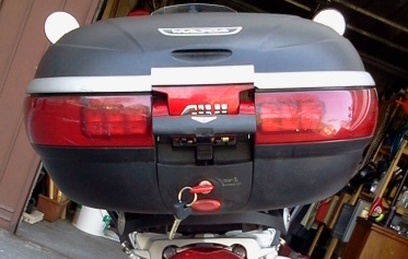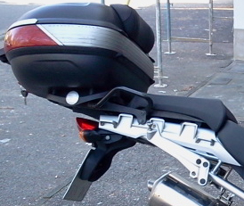 gebrauchtes Topcase "GIVI Monocase Maxia" mit Träger für 1200GS an. Topcase ist mit Rückenlehne für Sozius sowie LED-Leuchteneinsatz für Rücklichtanschluss ausgestattet. Anschluss an Bordelektrik ist vorgerüstet.2 Schlüssel ( 1 wg. Abbruch Kunststoffhalterung mit Epoxidharz repariert). Es passen locker 2 Schuberth Klapphelme rein. Haltersystem sw pulverbeschichtet, An den Befestigungsschrauben ist teilweise die Beschichtung abgelöst und Flugrost sowie Abplatzungen der Beschichtung vorhanden. Schrauben sind momentan in WD-40 am "entspannen".