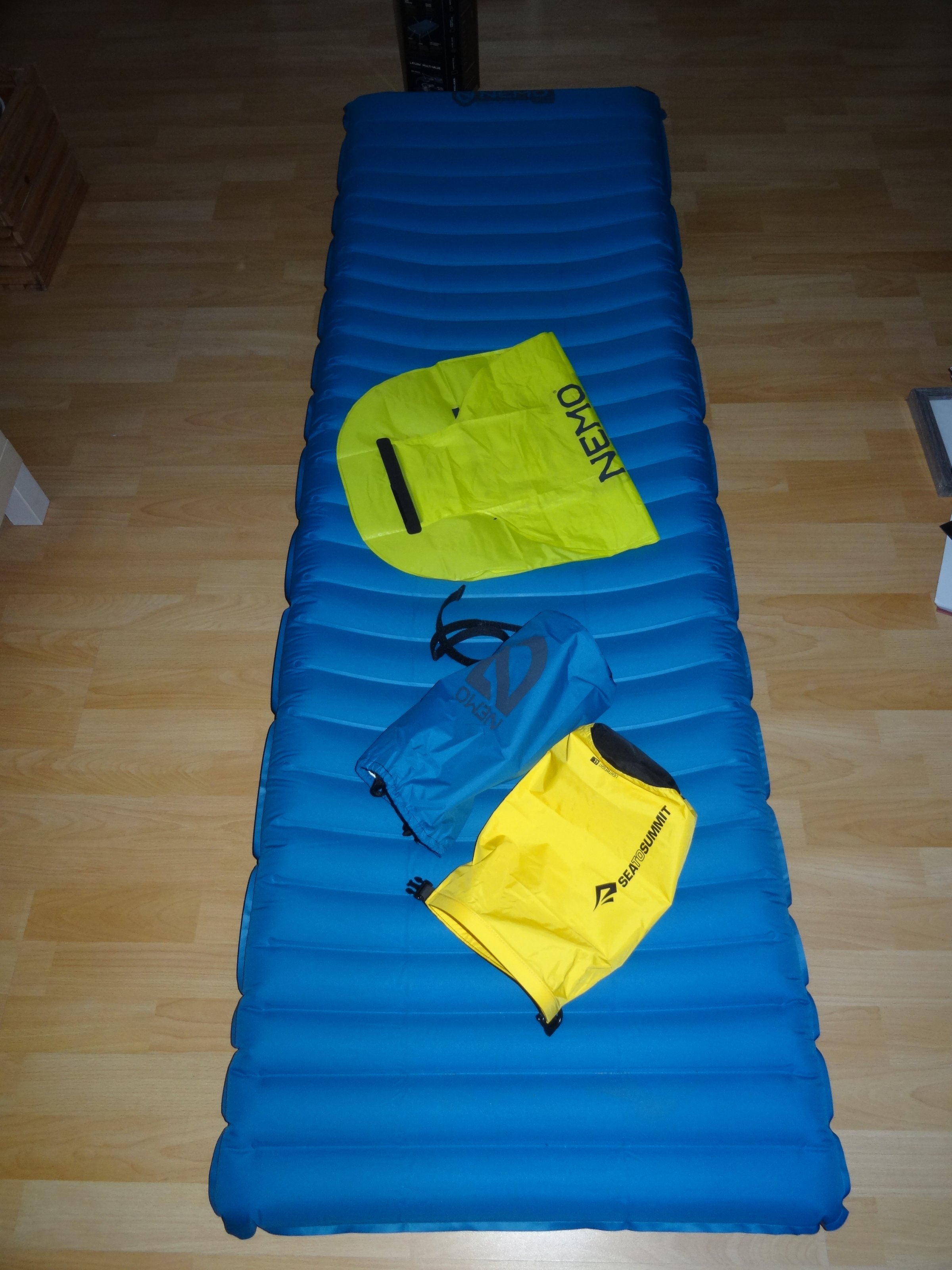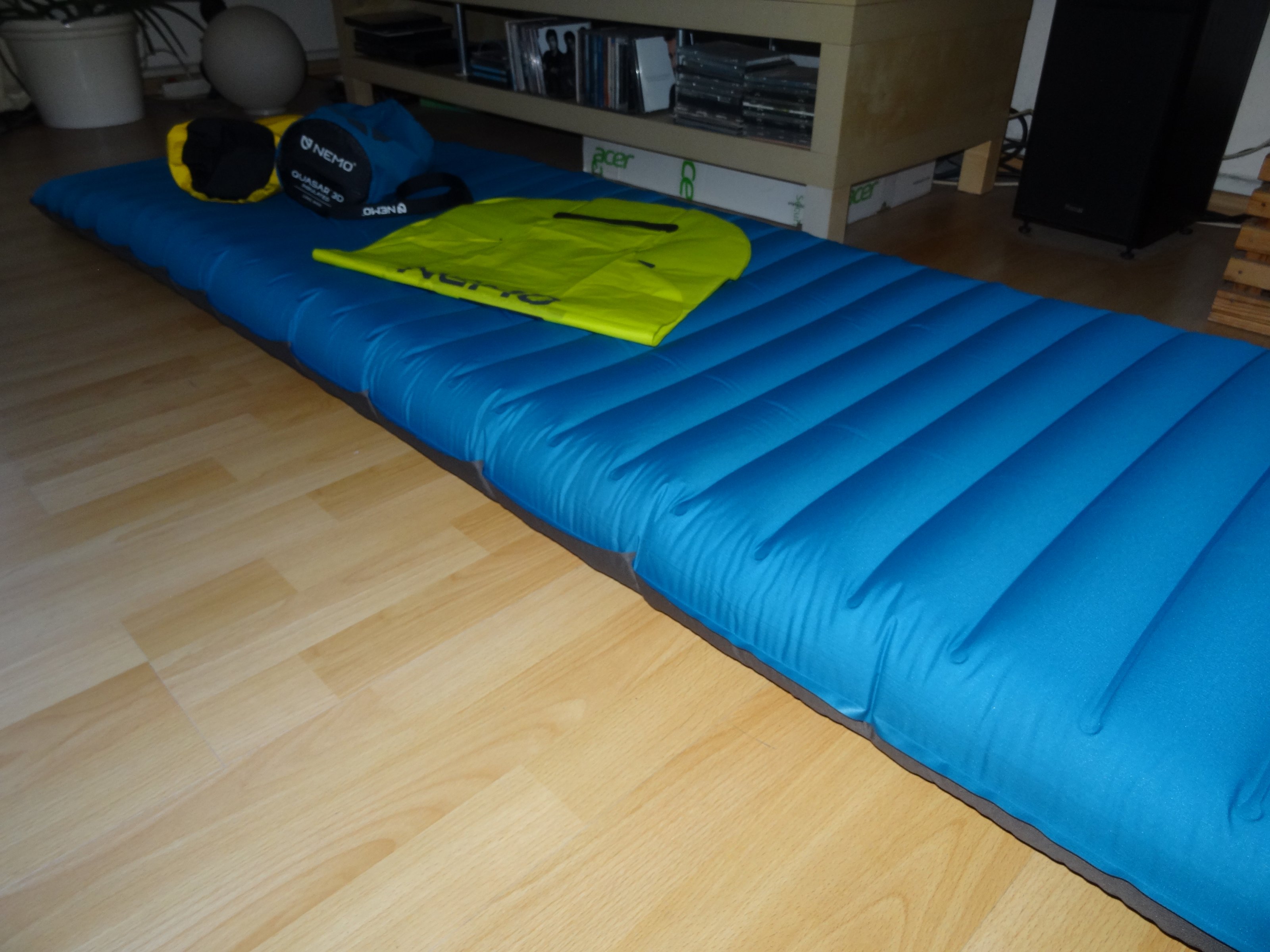 Die Matte hat eine gute Größe (193x64x9) und ist vom Packmaß her wirklich sehr klein und leicht (Ø 12 x 24 cm / 1,045 kg).