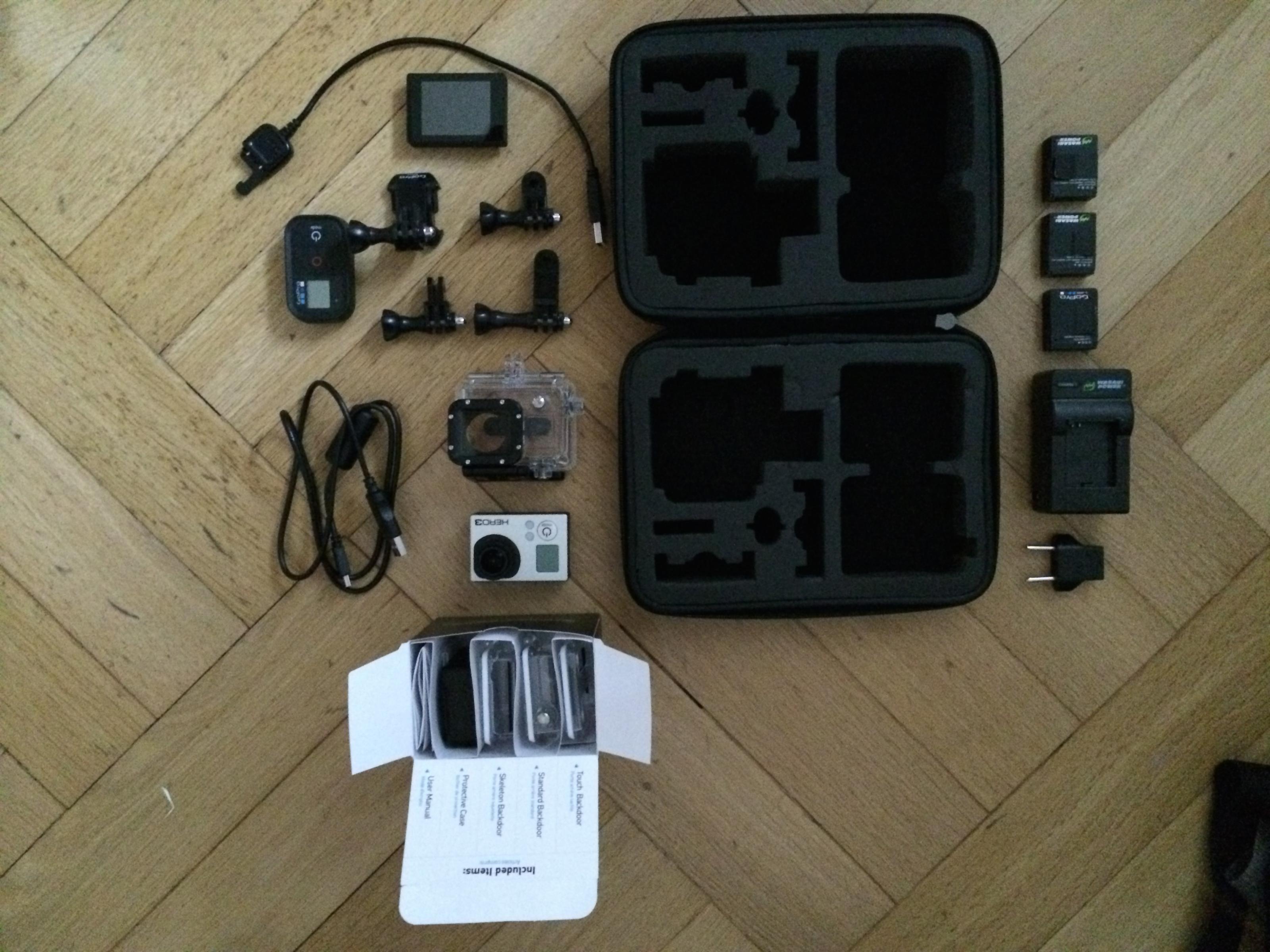 Mit dabei ist das gopro touch bacpac (99,00 Euro NEU und UNBENUTZT) incl. diverser backdoors. Ferner zwei zusätzliche WASABI Akkus incl. Ladestation + GoPro SP POV Case.