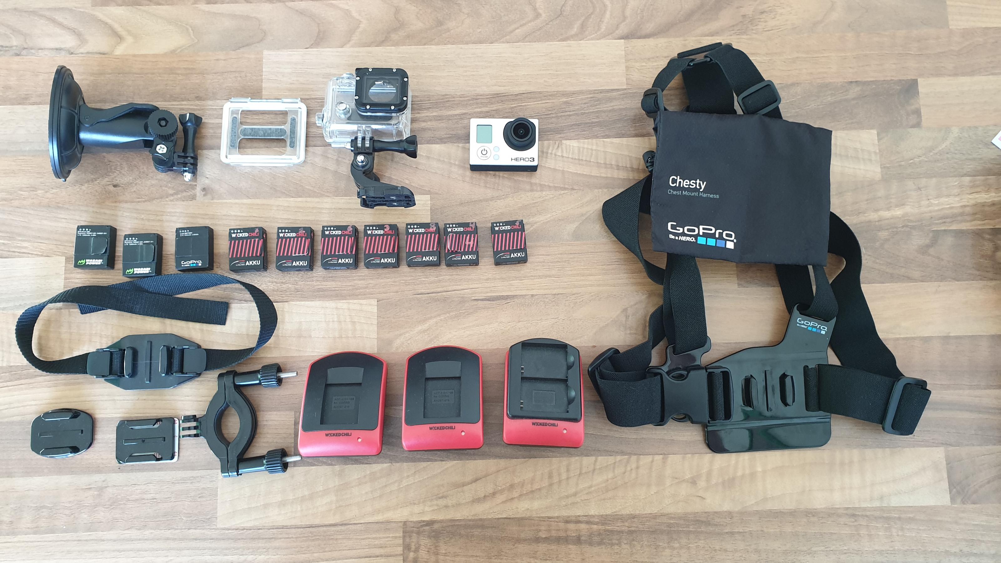 Zum Verkauf steht meine voll funktionsfähige GoPro Hero 3 inklusive dem Zubehör auf dem Bild.