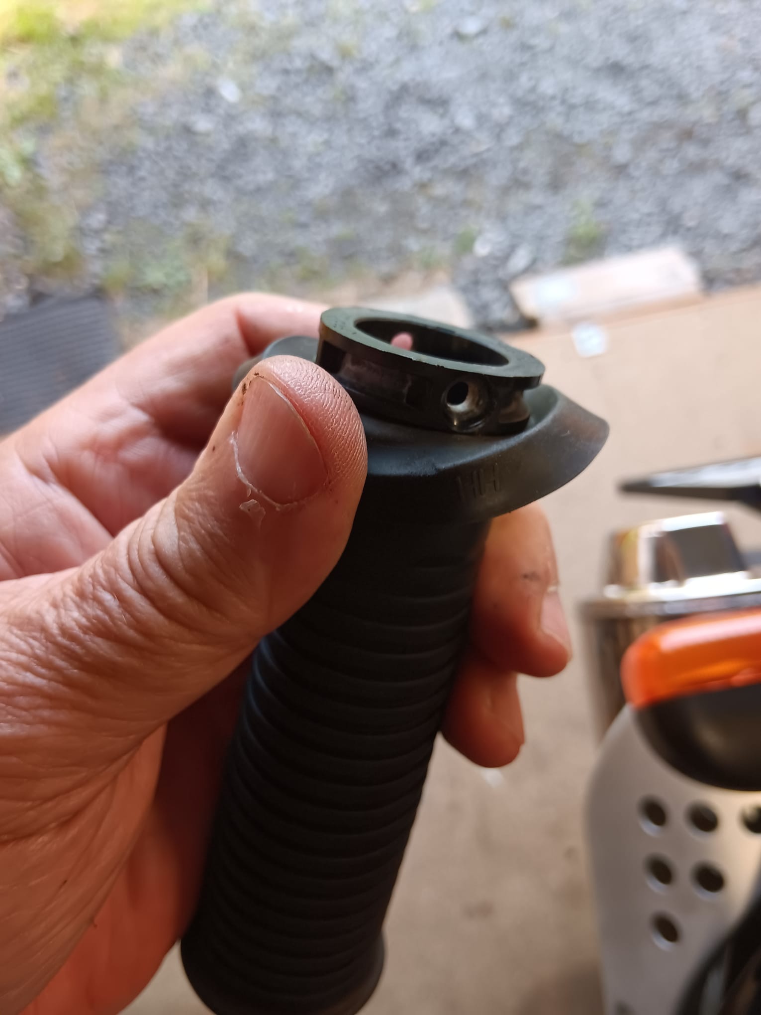 Ein freundliches Hallo in die Runde. Seit ein paar Wochen habe ich ja eine F 650 GS aus 2007 mit Griffheizung. Rechts funktioniert die einwandfrei, links überhaupt nicht. Deshalb habe ich heute mal den Griff abmontiert und 2 blanke Kabel darin gefunden. Das schwarze führt Strom. Dass die so nicht herumliegen sollten ist sogar für mich als Nichtschrauber offensichtlich doch ich kann nicht erkennen, wo die denn mal befestigt waren. Deshalb habe ich ein paar Fotos gemacht um den Sachverhalt zu verdeutlichen. Für hilfreiche Hinweise danke ich jetzt schon