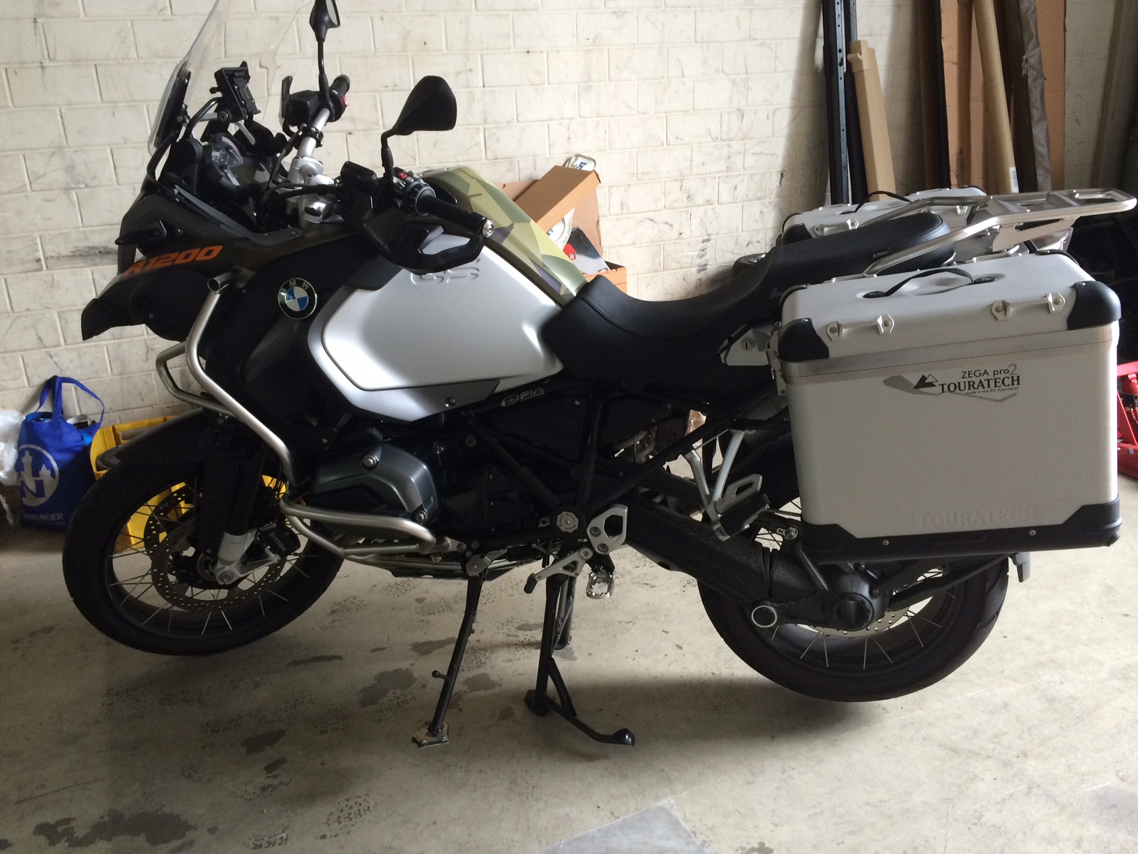 Touratech Zega Pro2 "And-S" Koffersystem 38/45 Liter mit Edelstahlträger schwarz 949,00 € Touratech Rahmenschutz groß für BMW R1200GS 39,90 Touratech Kühlerschutz Edelstahl für BMW R1200GS 85,90 Touratech Sitzbank 329