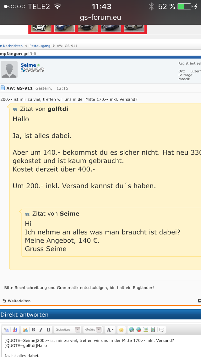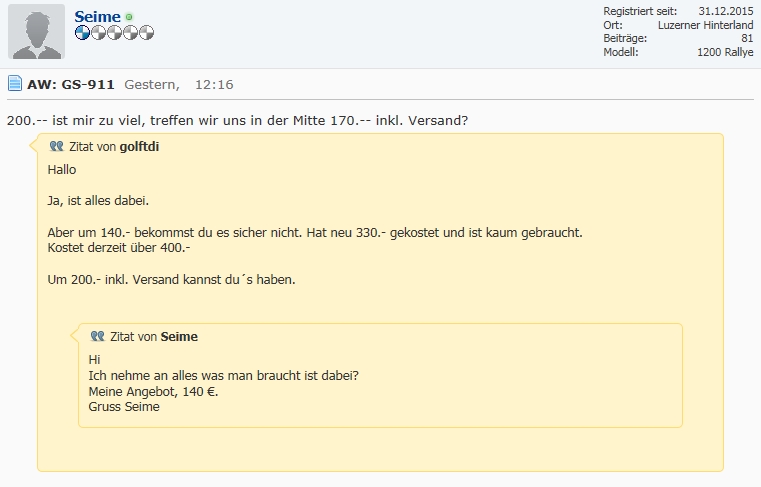 . Schließlich hat er geschrieben "mach mir ein Angebot"!!