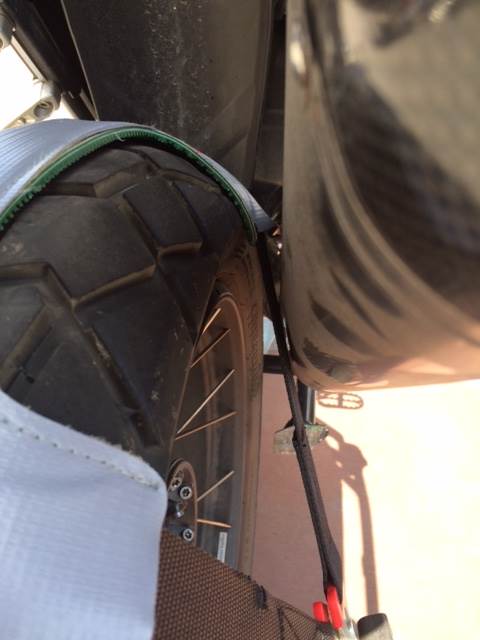 Da mir diese Lösung jedoch nicht gefällt, habe ich mir ein paar Gedanken zu Alternativen gemacht und bin auf den Tyrefix gestoßen. Dabei handelt es sich um eine Konstruktion aus meheren Zurrgurten, welche auf den Hinterreifen gelegt wird und dann an die normalen Spannpunkte greift.