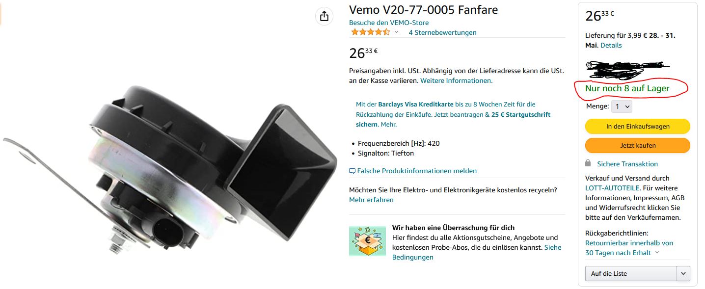 Es gibt dafür ein SEHR leicht mögliches, einfaches Upgrade - durch das Verwenden des Tiefton-Horns vom 5er BMW.