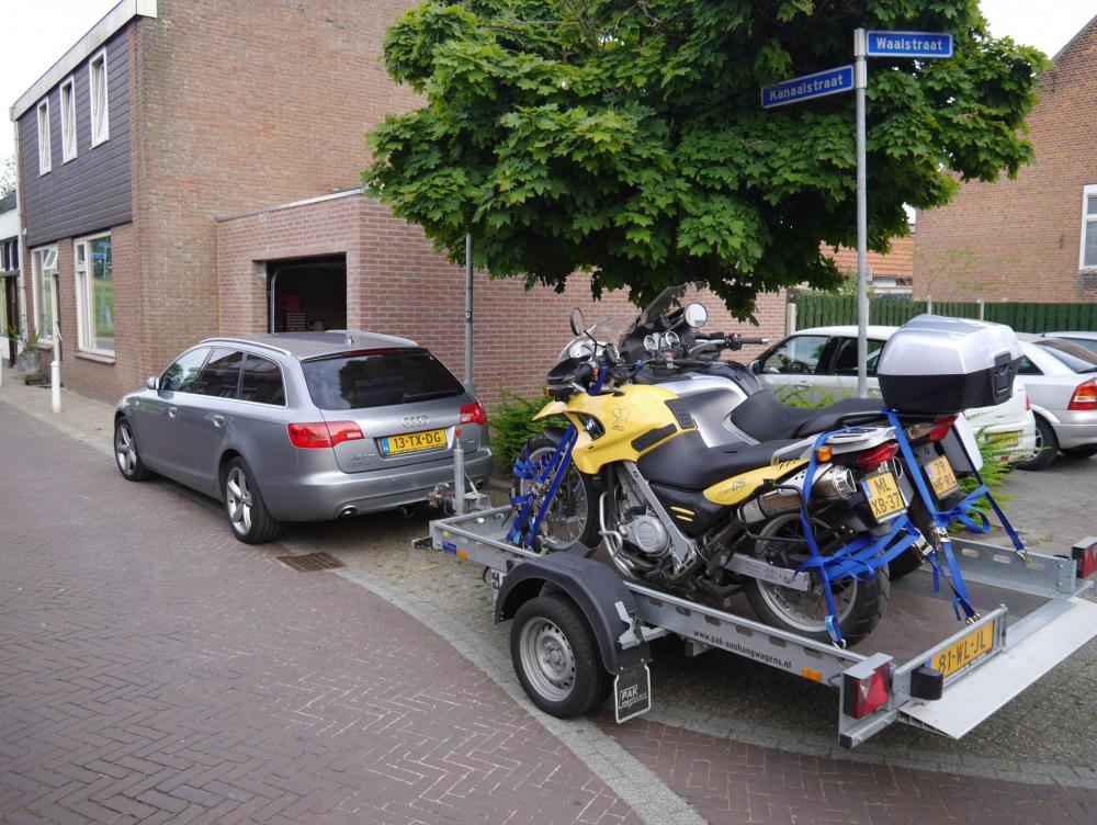 Die letzten Wochen hatte ich ja zwei bikes auf dem Anhänger dabei. Die 790er meiner Frau mit Gurten verzurrt, meine 1090er wie immer mit AXfix.