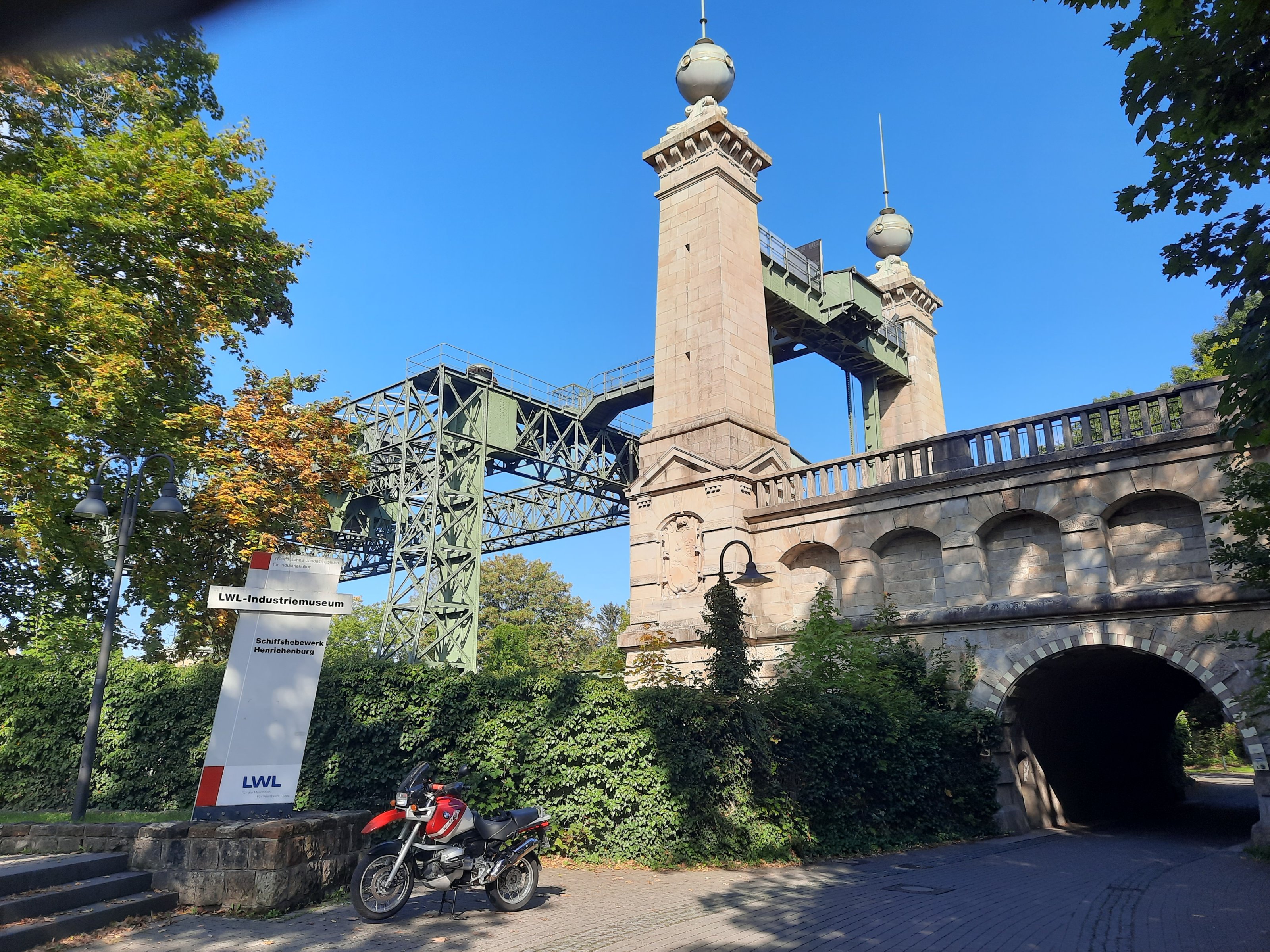 Da steht so ein doofes Verkehrsschild kreisrund weiß mit einem roten Rand. Klar kann man daran fahren aber ob man das tun sollte das vermag ich nicht zu sagen.Da kann man scheinbar doch mit der GS vor die Brücke fahren.