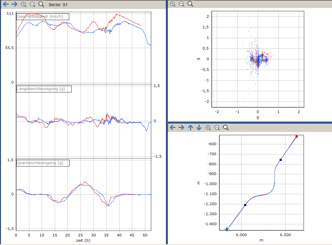 Diese horizontale Kraft kann in eine Längskomponente (Beschleunigen/Bremsen) und eine Querkomponente (Seitenführungskraft) zerlegt werden (Kammscher Kreis). Überschreitet die Resultierende aus beiden Komponenten die maximal übertragbare Kraft, kommt man ins Rutschen. Wenn man also stark bremst/beschleunigt kann man gleichzeitig nicht volle Schräglage fahren und umgekehrt.