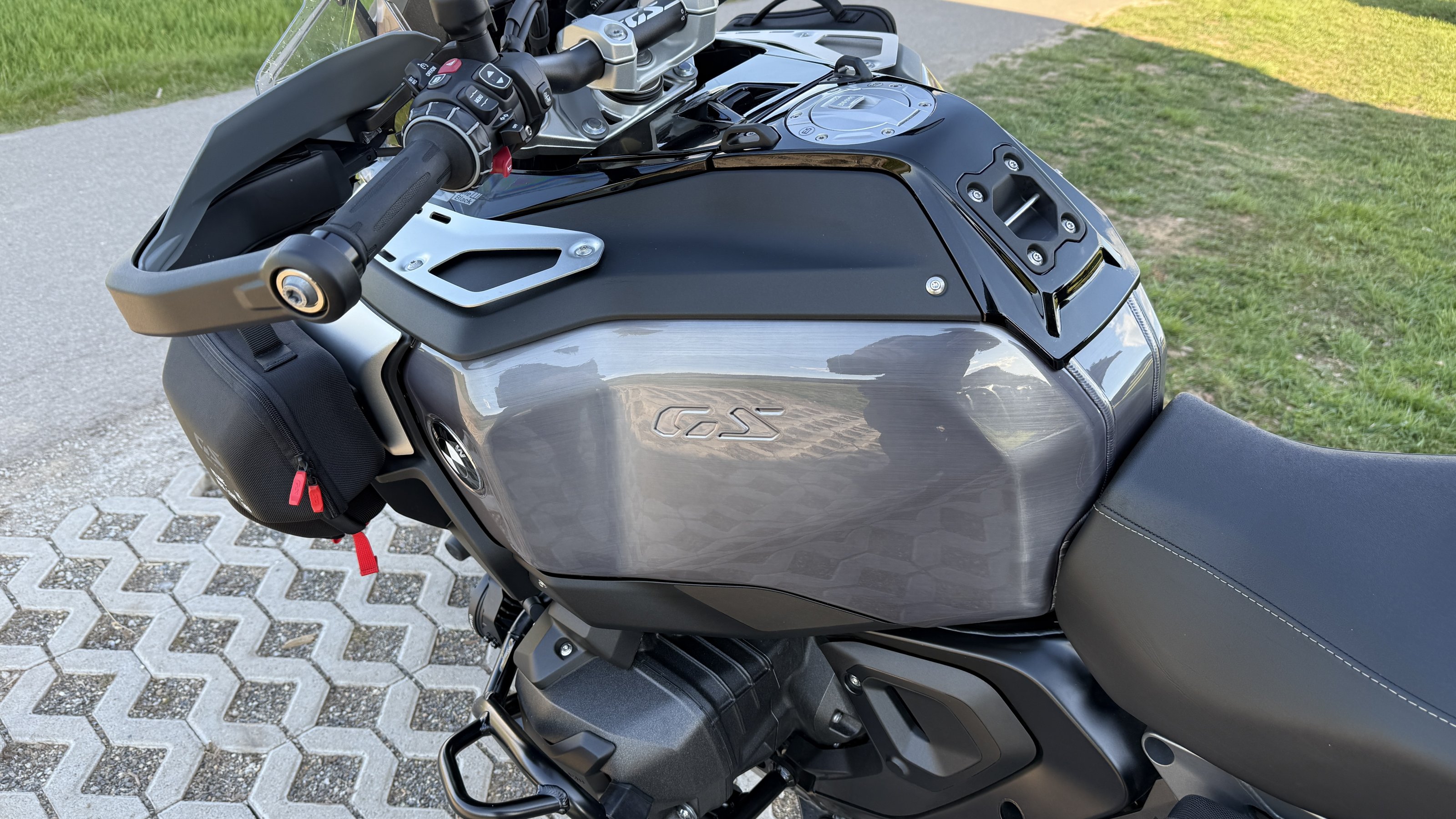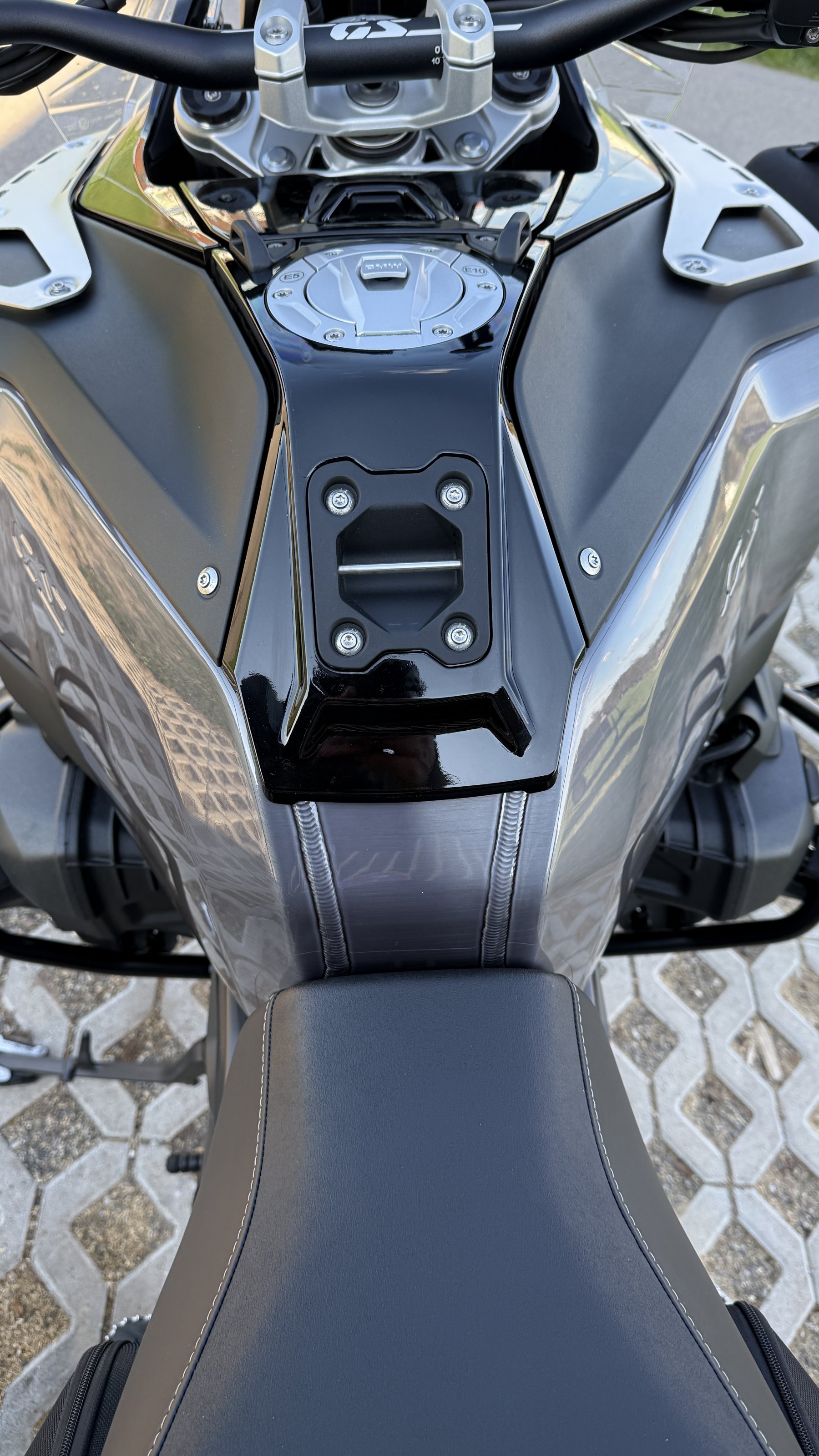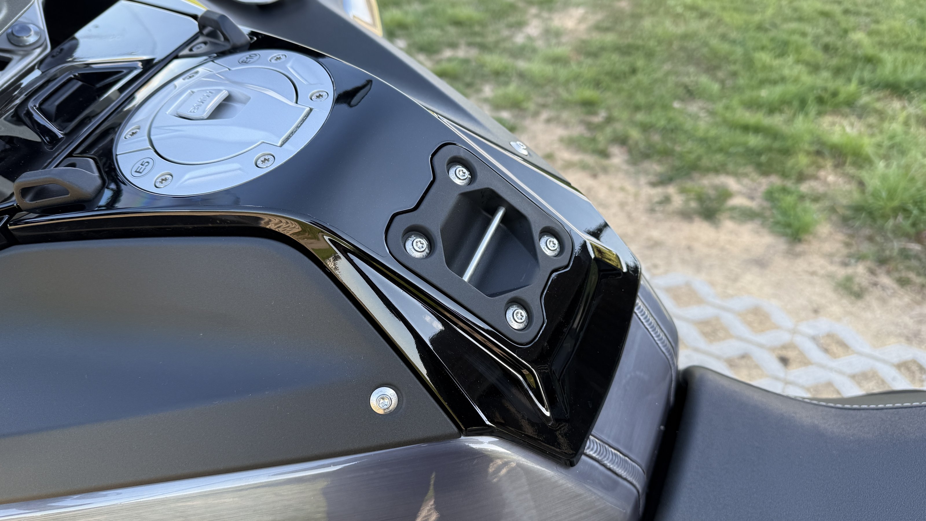 Foliere meinte, die Folie sei top Qualität und auch ich bin mit dem Ergebnis sehr zufrieden. Foliert wurden vom Tank diese Teile/Bereiche hier:
