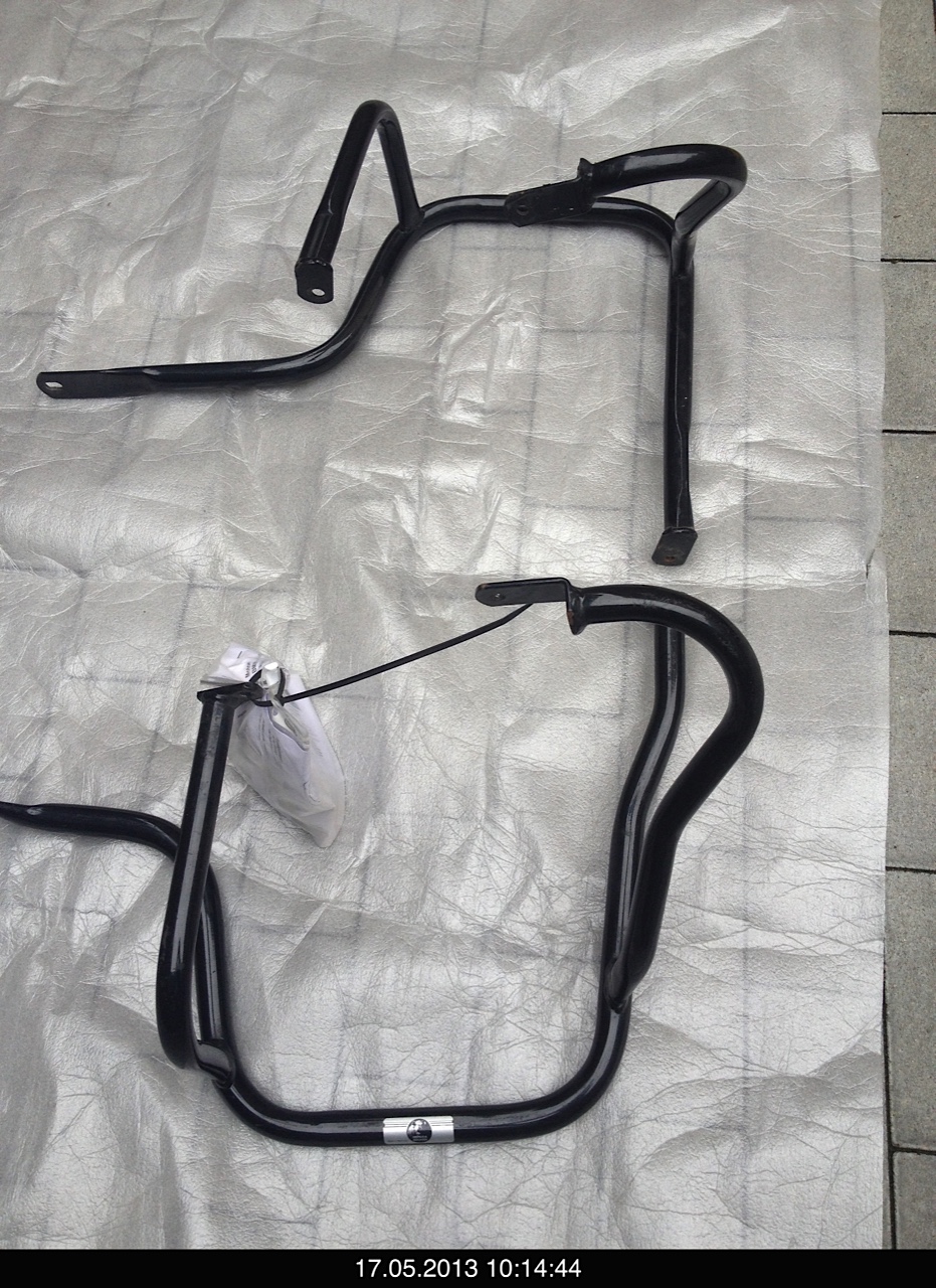 verkaufe einen hier im Forum erstandenen aber von mir nie montierten (hab mir dann den Chrombügel mit Tankschutz geholt) Hepko& Becker Sturzbügel für die GS1100 inkl aller Anbauteile, Schrauben und Anleitung. Ohne Sturz, ohne Dellen u Beulen.