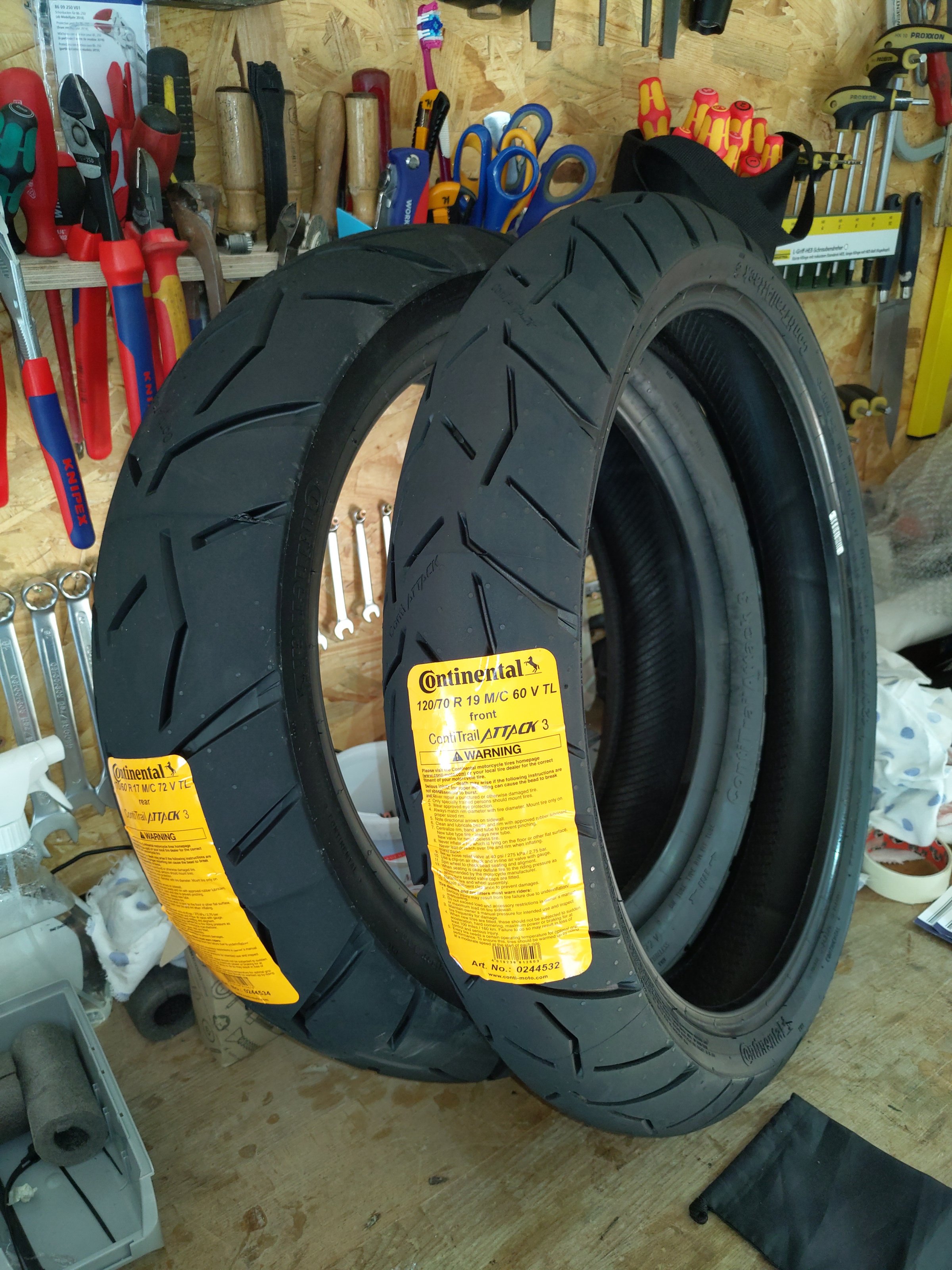 Ich nehme dich beim Wort. Nachdem ich gestern auf nassen Straßen in Sauerland 3 X vorne weggerutsch bin (nichts passiert) war das Vertrauen in den A41 endgültig hin. Da er vorne nur noch 2,0mm Profil hatte, sollte das sowieso seine letzte Tour sein. Was habe ich mich gefreut, als ich gestern entnervt nach Hause kam und die beiden Decken in der Garage standen.Ihr werdet glauben, ihr habt ein anderes Motorrad. Versprochen!