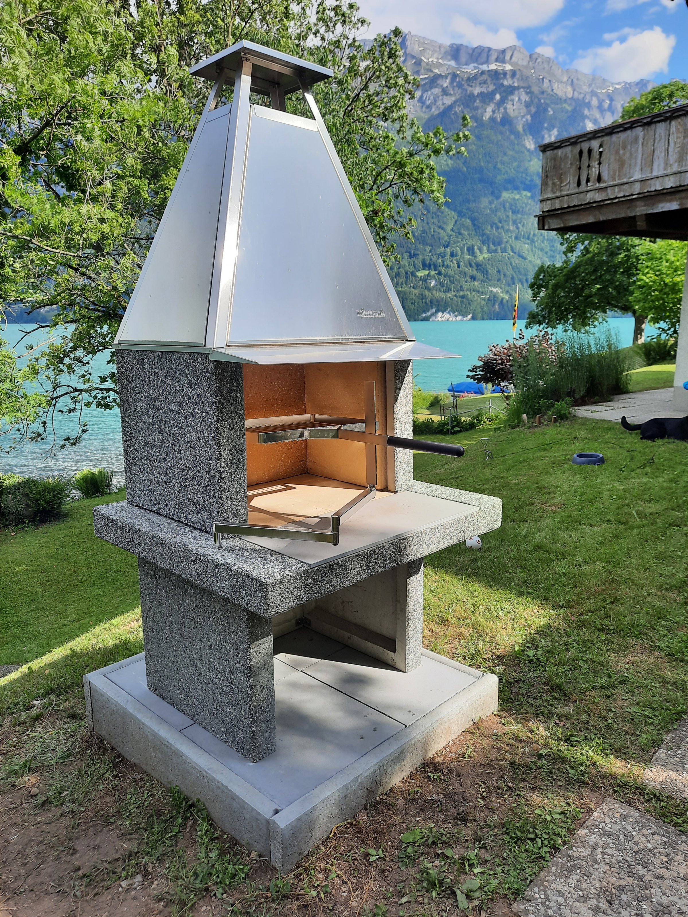 Junior baute noch im Herbst den Sockel, und jetzt die Tage musste in einer Ausstellung ein richtig massiver Gartengrill weg, es musste schnell gehen, und heute Nachmittag haben wir ihn dann mit dem Enkel aufgestellt:
