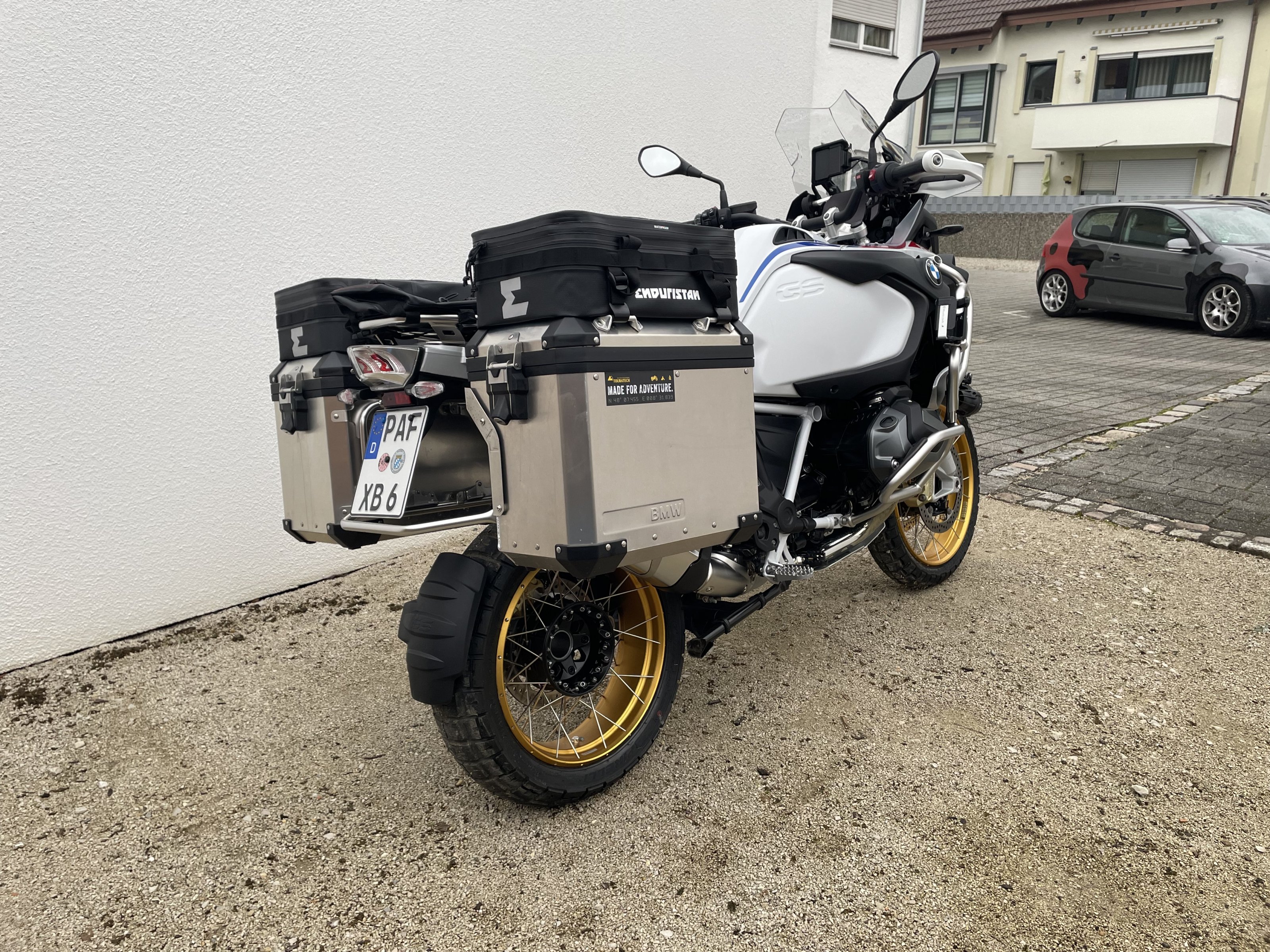 Zhouwu Motorschutzabdeckung von Amazon. Die werden - nur auf den original BMW - Motorschutzbügel geschraubt und sollen den Zylinderkopf beim Umfallen vor spitzen Steinen schützen, was bei meiner Fahrumgebung Sinn macht.