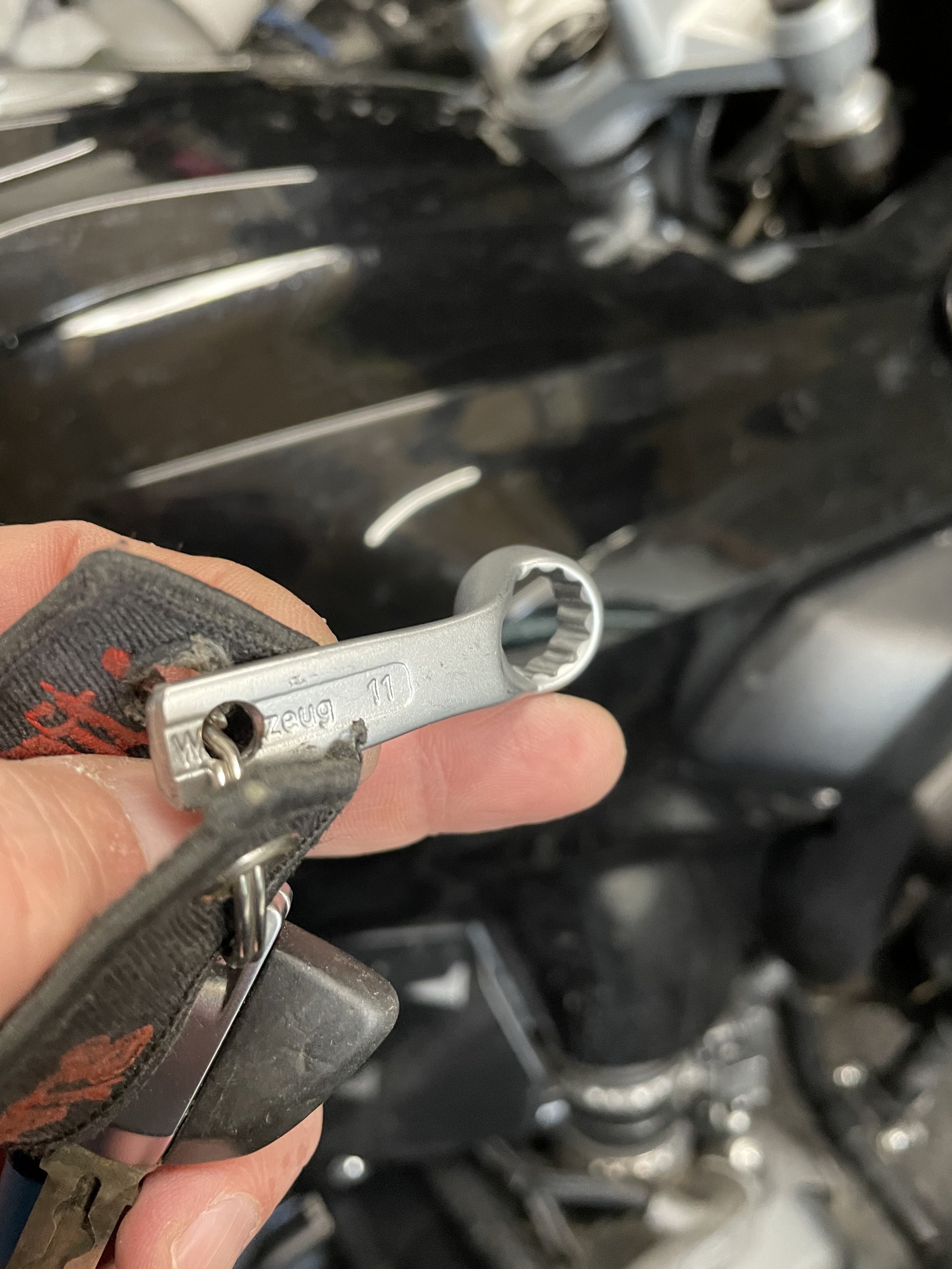 ( ist eine Zoll schraube mit ner 11er Mutter ( die hat nicht jeder dabei ) )