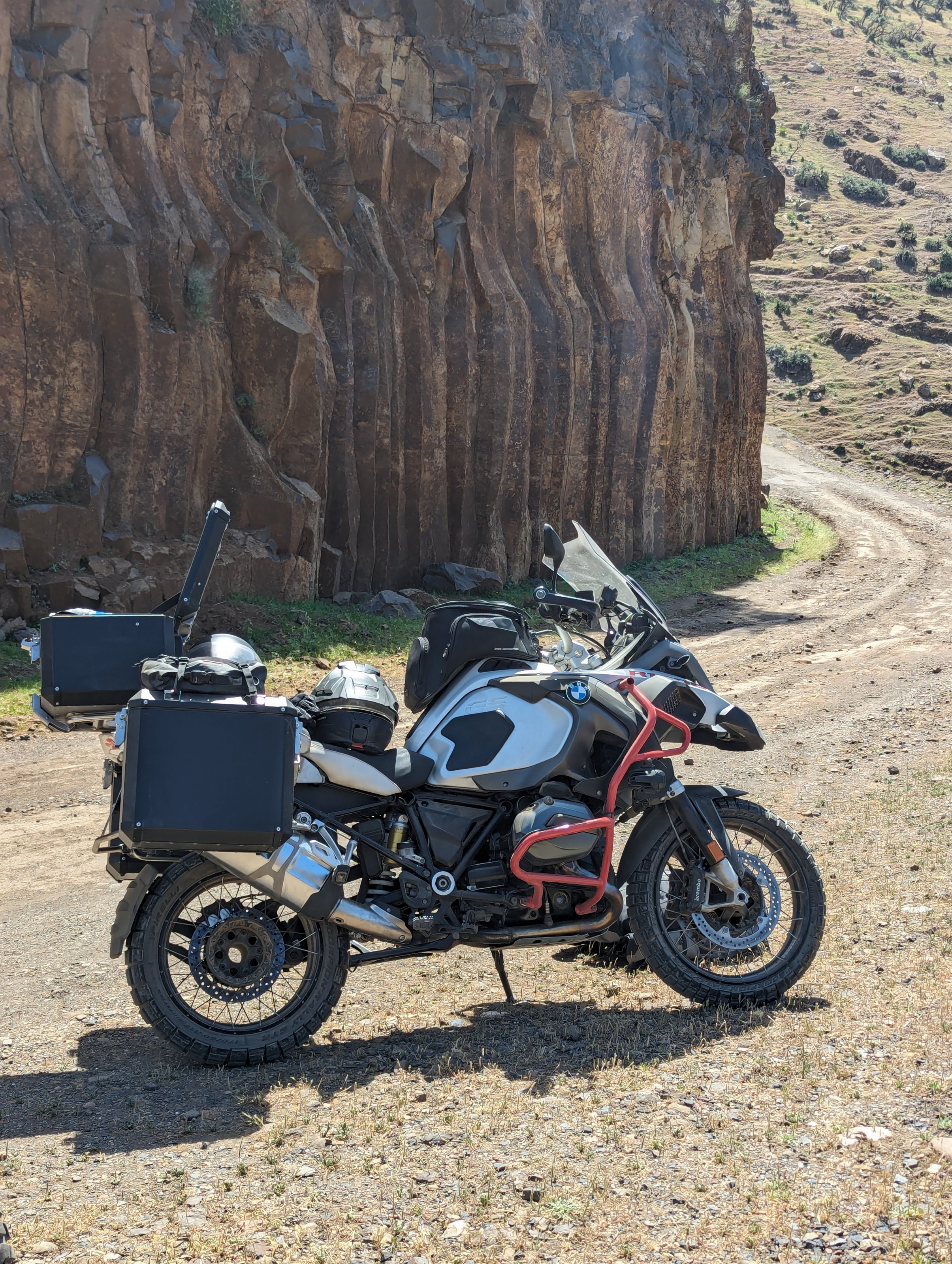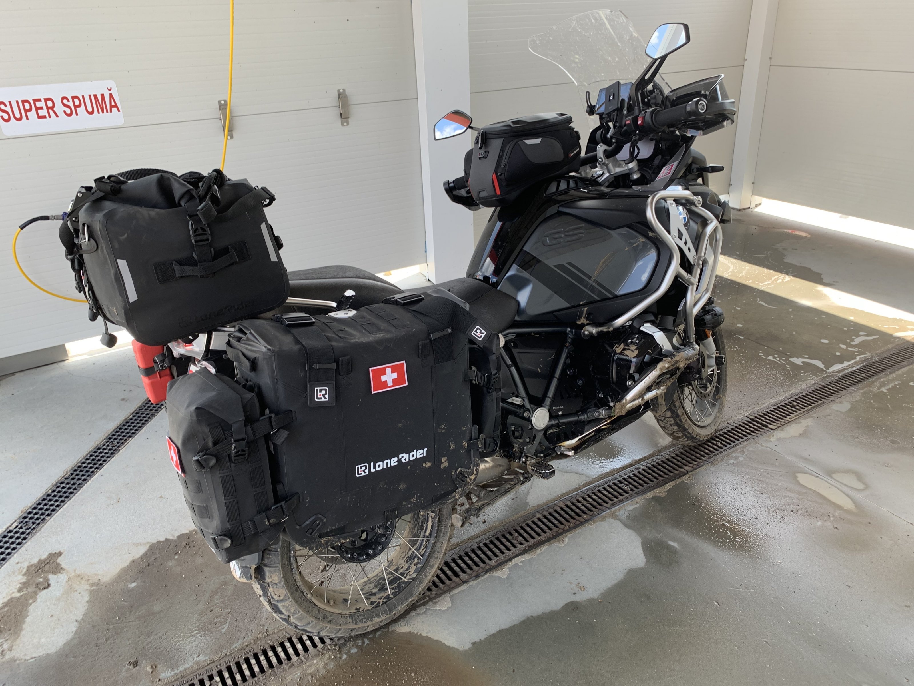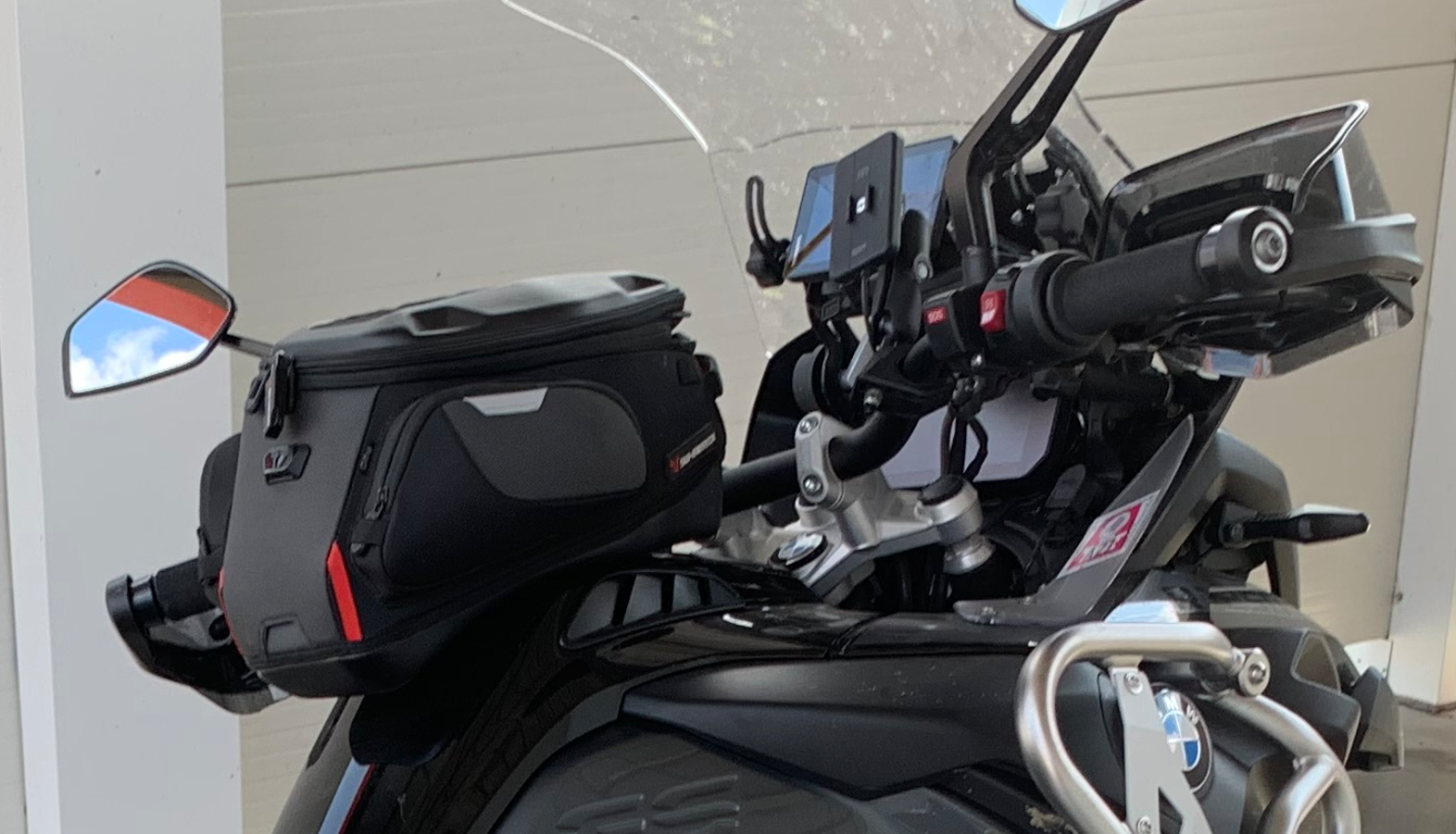 Ich habe auf meiner 1250GSA die Wunder Lenkererhöhung mit Knick nach hinten (heisst glaube ich Ergo), und den grossen SW Motech Tankrucksack.