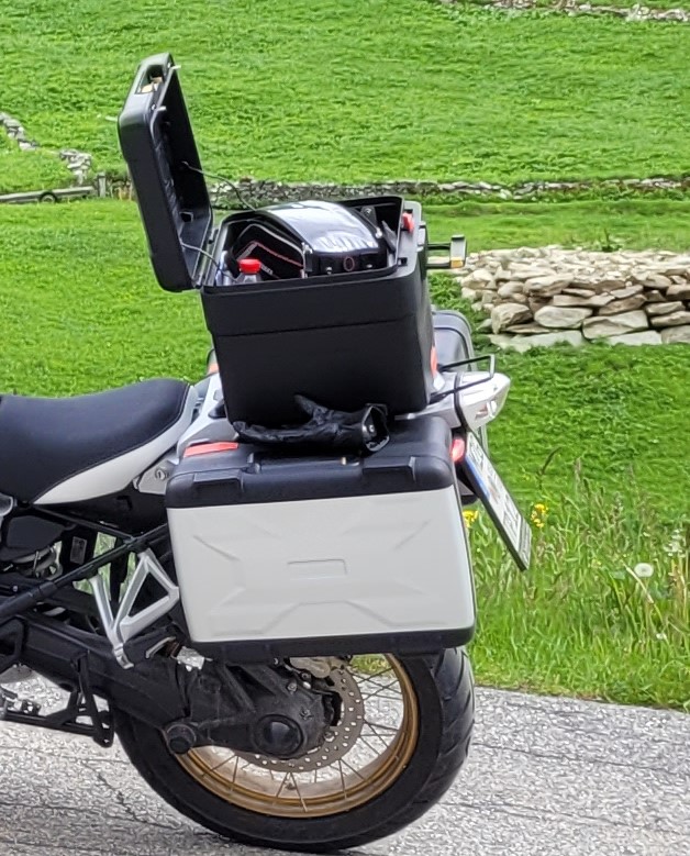 Ich hatte ihn in Verbindung mit dem Vario-Topcase und der Gepäckplatte montiert. Da in dieser Konstellation der Heckträger als Greifmöglichkeit fehlt, hatte ich somit wenigstens einen Haltegriff am Heck. Zur Verschraubung habe ich die beiden hinteren Schrauben des demontierten Heckträgers genutzt.