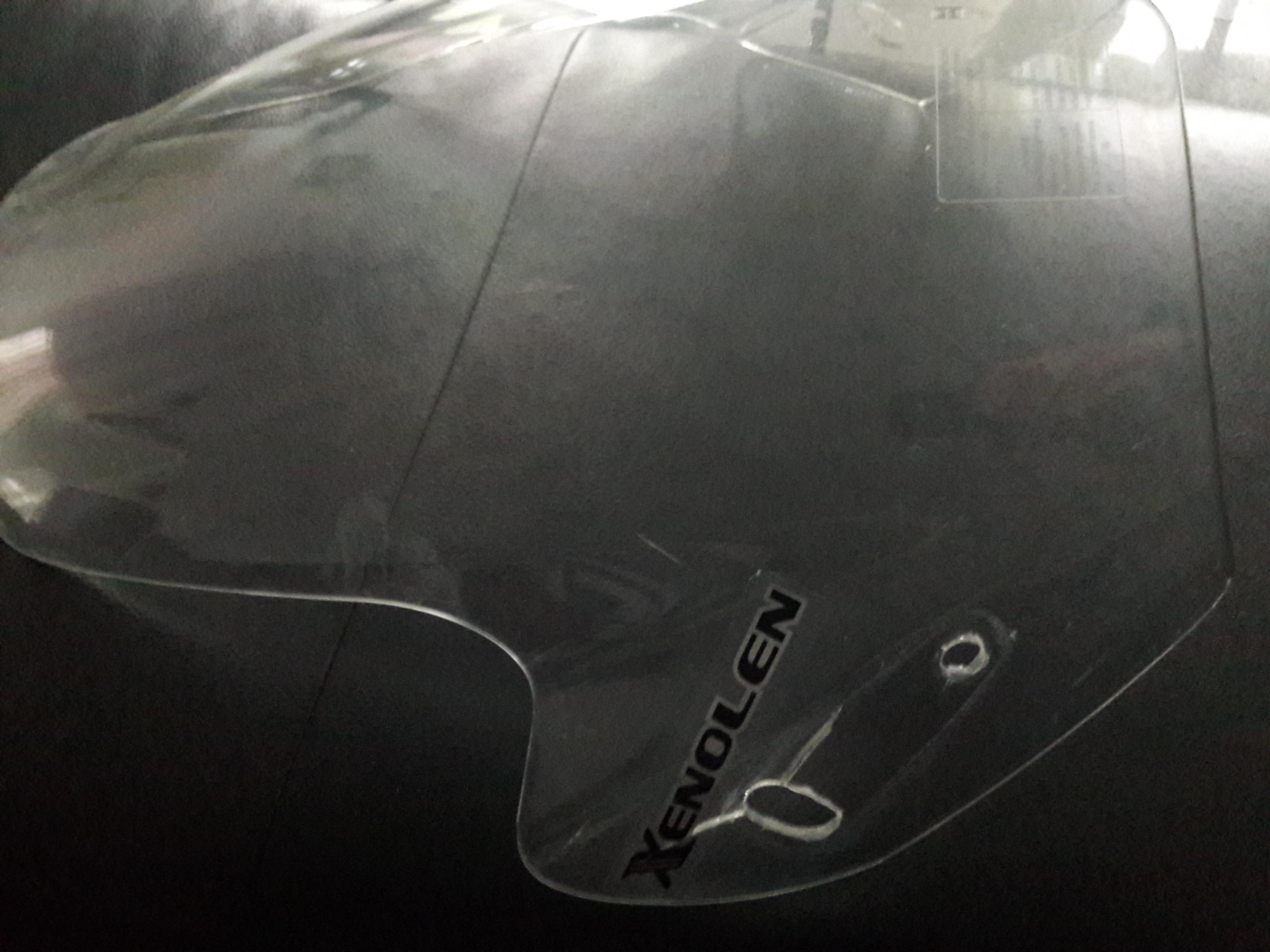 Das Windschild hat ein, zwei Schleifspuren/Kratzspuren sowie kleine Risse an den Befestigungspunkten.