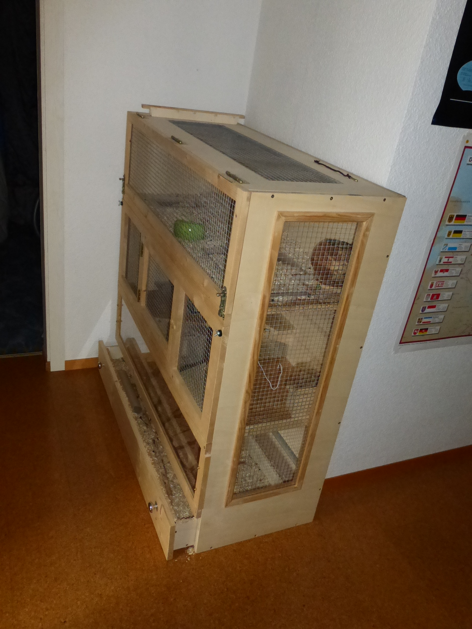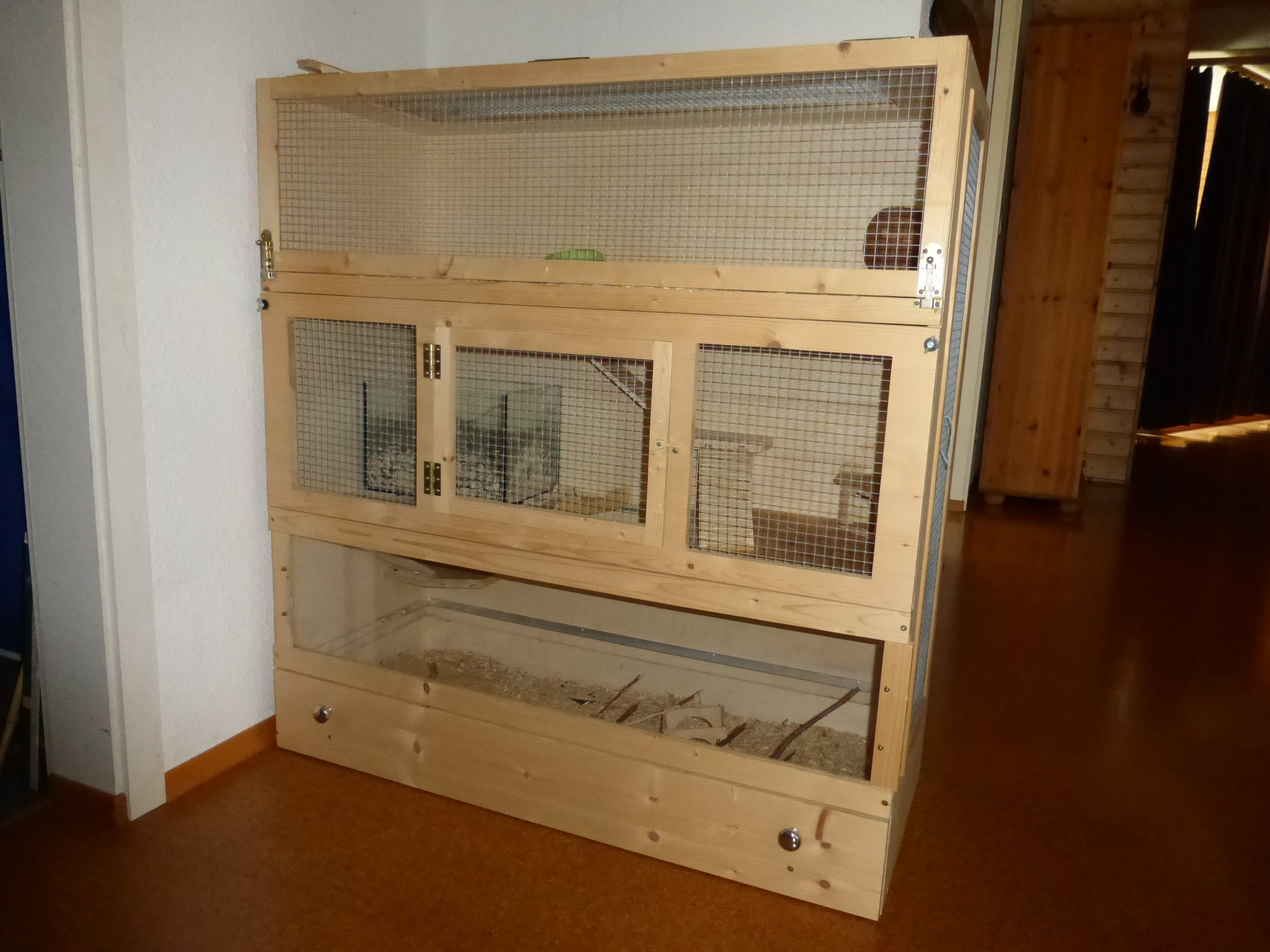 Ich habe jetzt seit 4 Jahren DEGUS, die aber keinen Käfig aus Holz vertragen, weil die alles annagen und zerlegen. Deshalb konnte ich den nicht verwenden, bzw. er war auch etwas zu klein für 5 Degus.