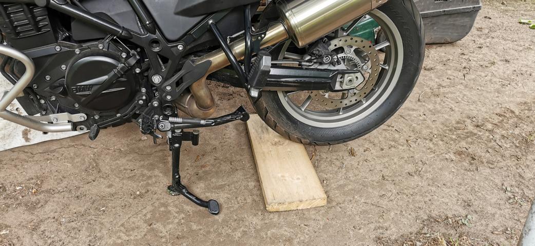 Inzwischen habe ich noch eine Hilfe zum Aufbocken ( für zu Hause ) gefunden.