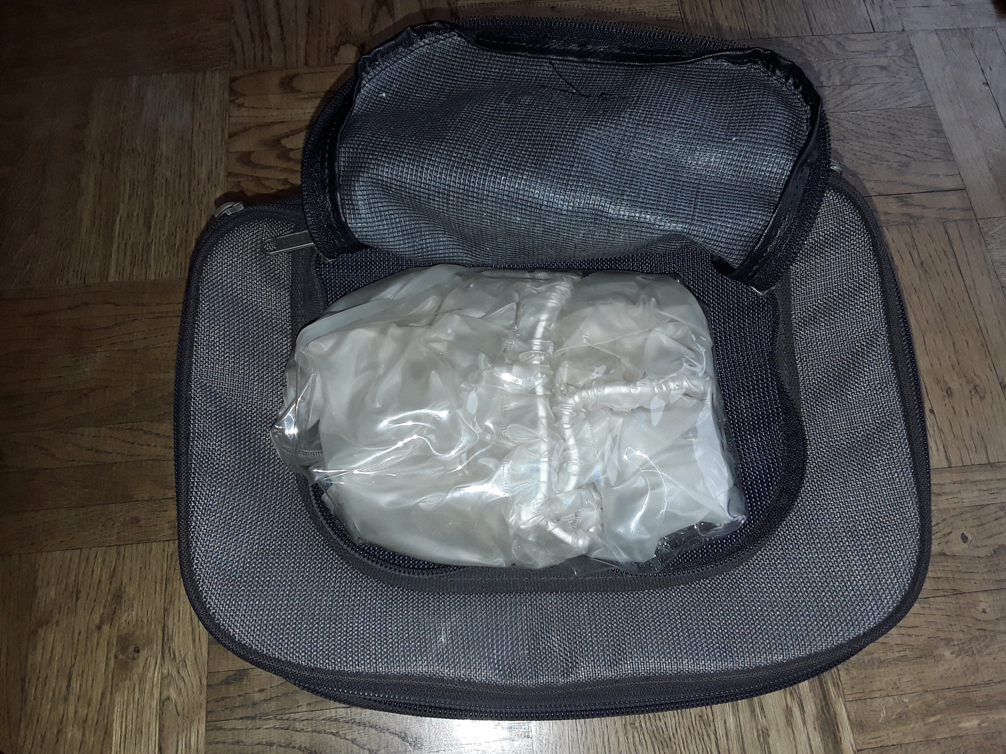 Mit Reißverschluss erweiterbar. Mit Regenüberzug.