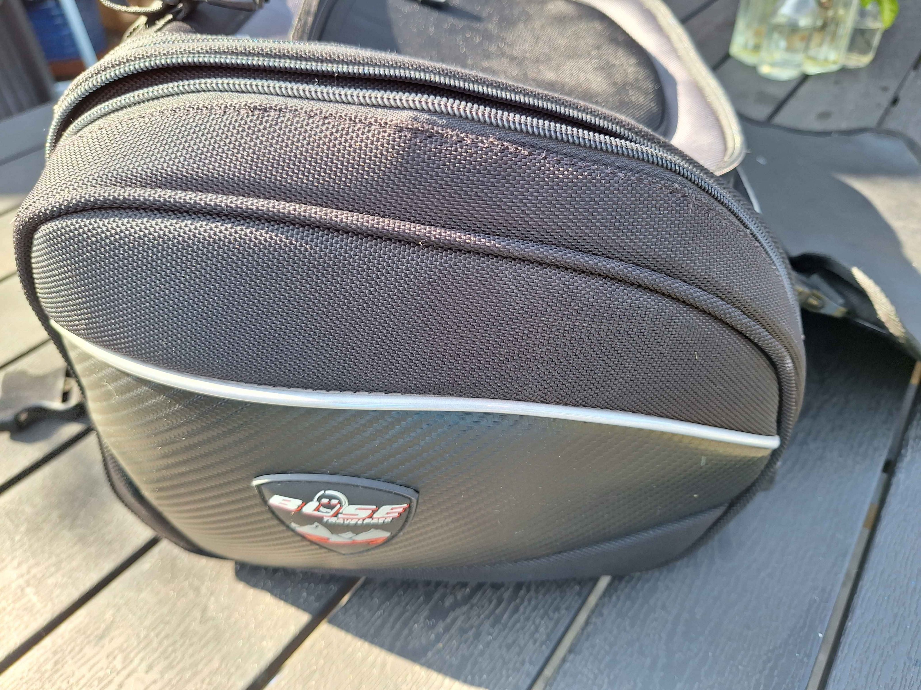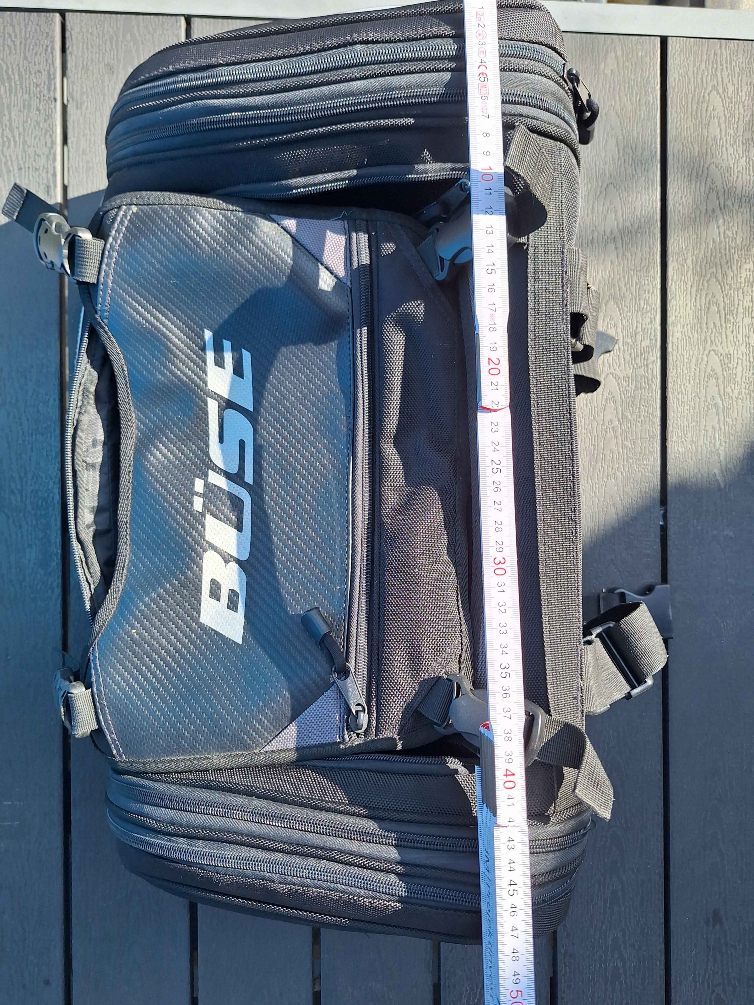 biete privat wenig benutzte Hecktasche BÜSE mit Vergrößerung per Reißverschluss und Regenhaube.