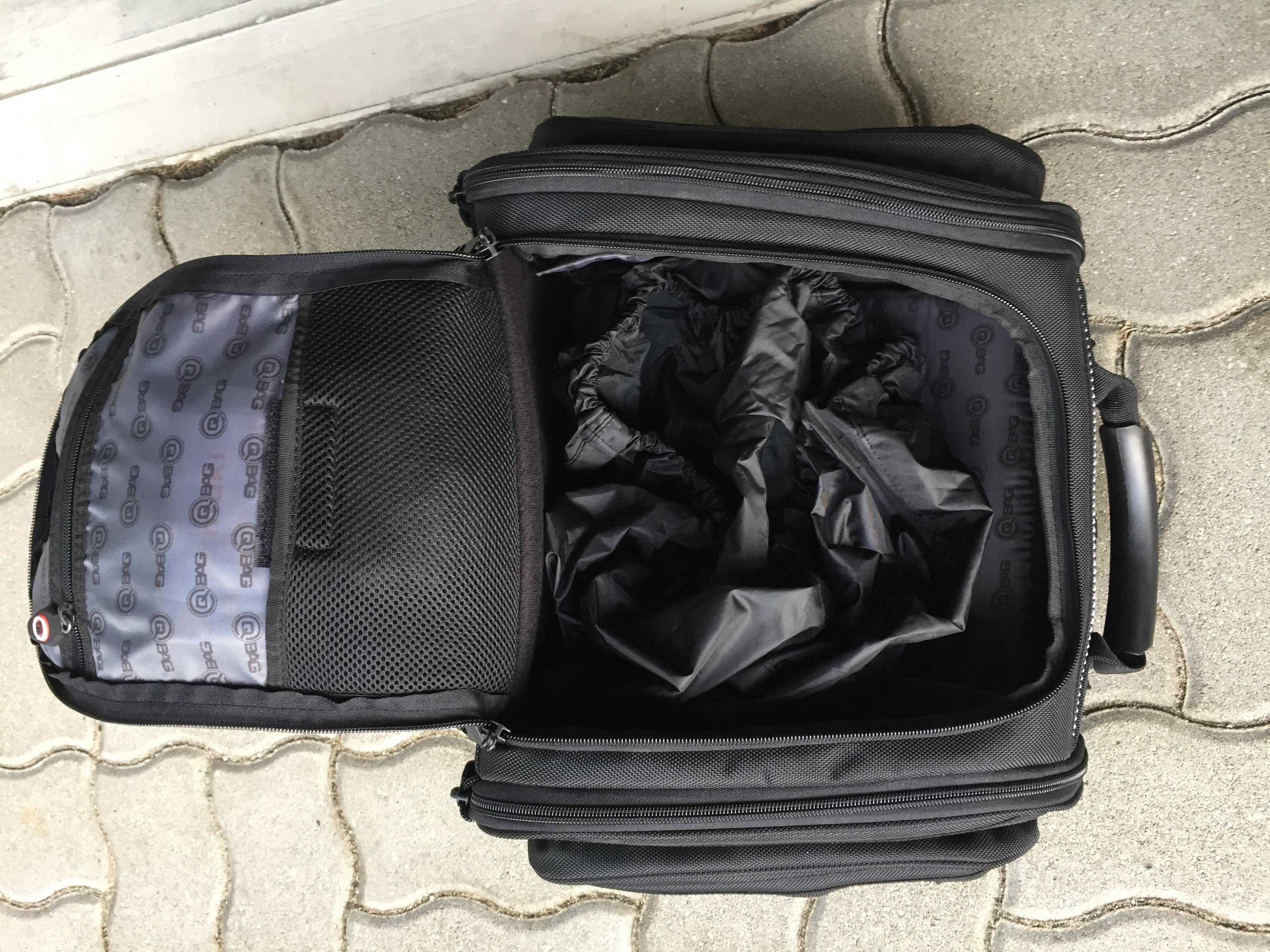 Stauraum in der Breite auf beiden Seiten durch Erweiterungsreißverschlüsse veränderbar.