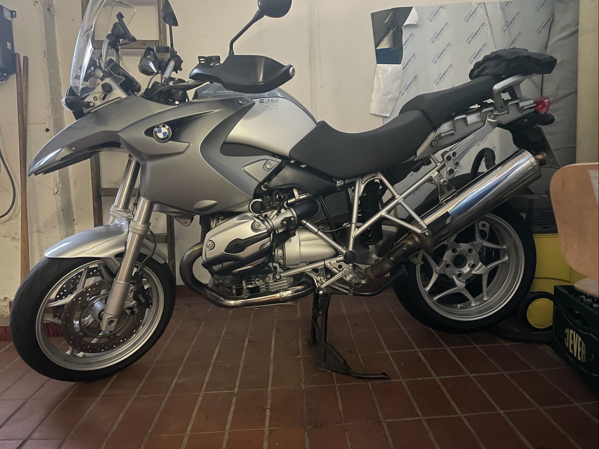 Ich habe von einem Kollegen einen Rädersatz von einer R1200R bekommen, die er vorher auf seiner 2006er GS montiert hatte. Den Umbau hat er so auch vom TÜV eingetragen bekommen, will nun jedoch auf einen anderen Felgensatz umsteigen. Da bei ihm alles geklappt hat, habe ich die Räder auf meiner 2007er GS K25 (ursprünglich Speichenfelgen) montiert. Kürzere Radbolzen wurden verbaut, sowie der geänderte vordere Kotflügel. Es kam der Winter, während der Winterpause habe ich die Speichenfelgen verkauft, nach der Winterpause will ich zum TÜV und stelle fest, dass die ABS Leuchte aktiv ist und der Tacho mir doppelte Geschwindigkeit anzeigt. Mit der Situation überfordert wende ich mich an meinen Freundlichen. Dieser wechselt mir netterweise den Drehzahlsensor, macht das Getriebeöl neu und tauscht einen Faltenbalg für 300 EUR. Das Problem mit dem Tacho hat er nicht in den Griff bekommen, dieser zeigt nun bis 30km/h korrekt an und steigt dann komplett aus. Der Drehzahlmesser läuft weiterhin einwandfrei. Vielen Dank für den Service. Ich habe mir jetzt, da ich Ende des Monats (03/2022) durch Portugal touren will und das Mopped in Kürze von der Spedition abgeholt wird, einen originalen Gussräder - Satz besorgt und montiert, in der Hoffnung, dass nun mit 19 Zoll vorne und 17 Zoll hinten und original Bereifung alles wieder funzt. Leider Fehlanzeige. Immer noch kein ABS und keine Geschwindigkeitsanzeige - aber immerhin wieder mit Betriebserlaubnis unterwegs.