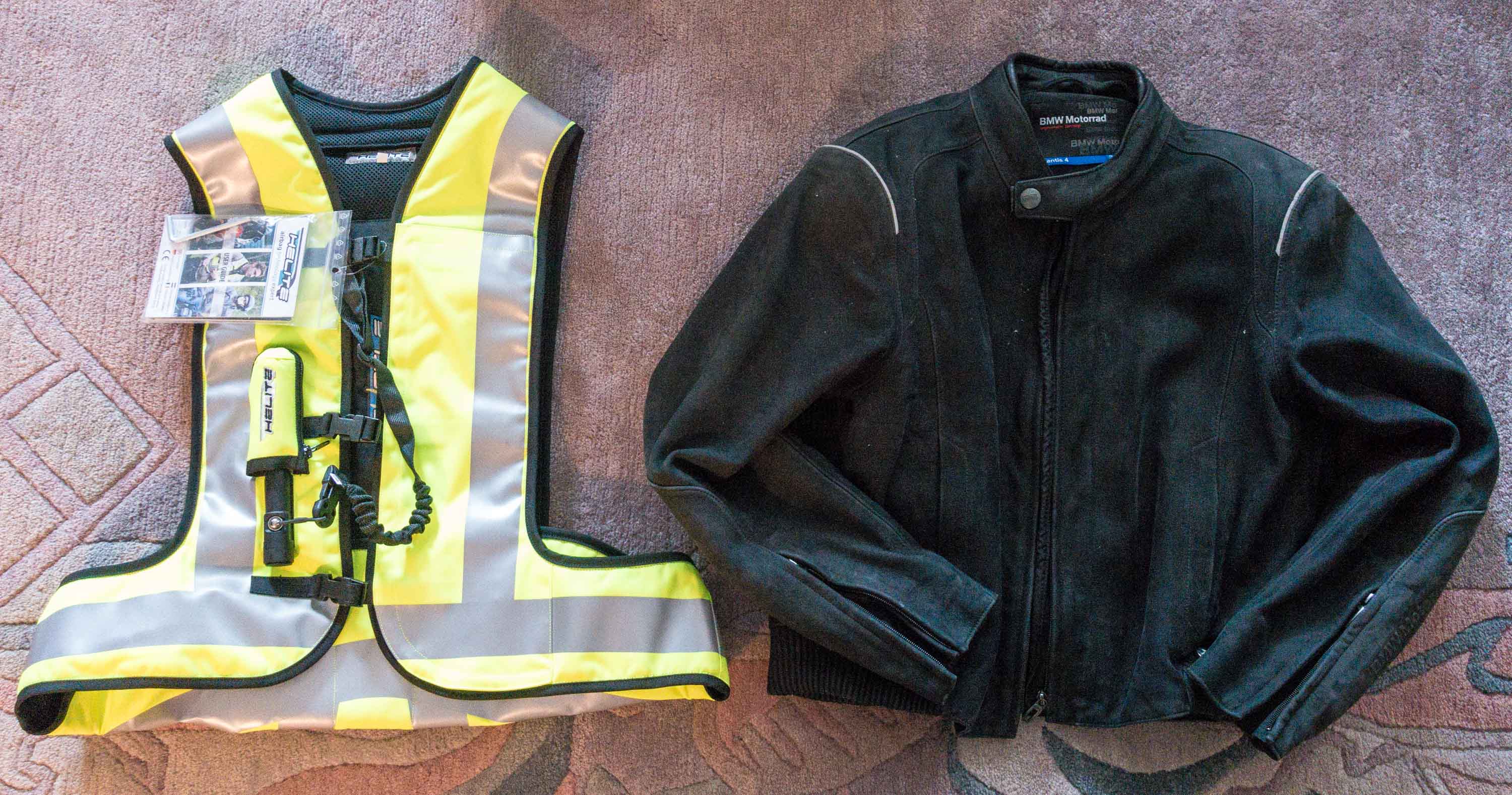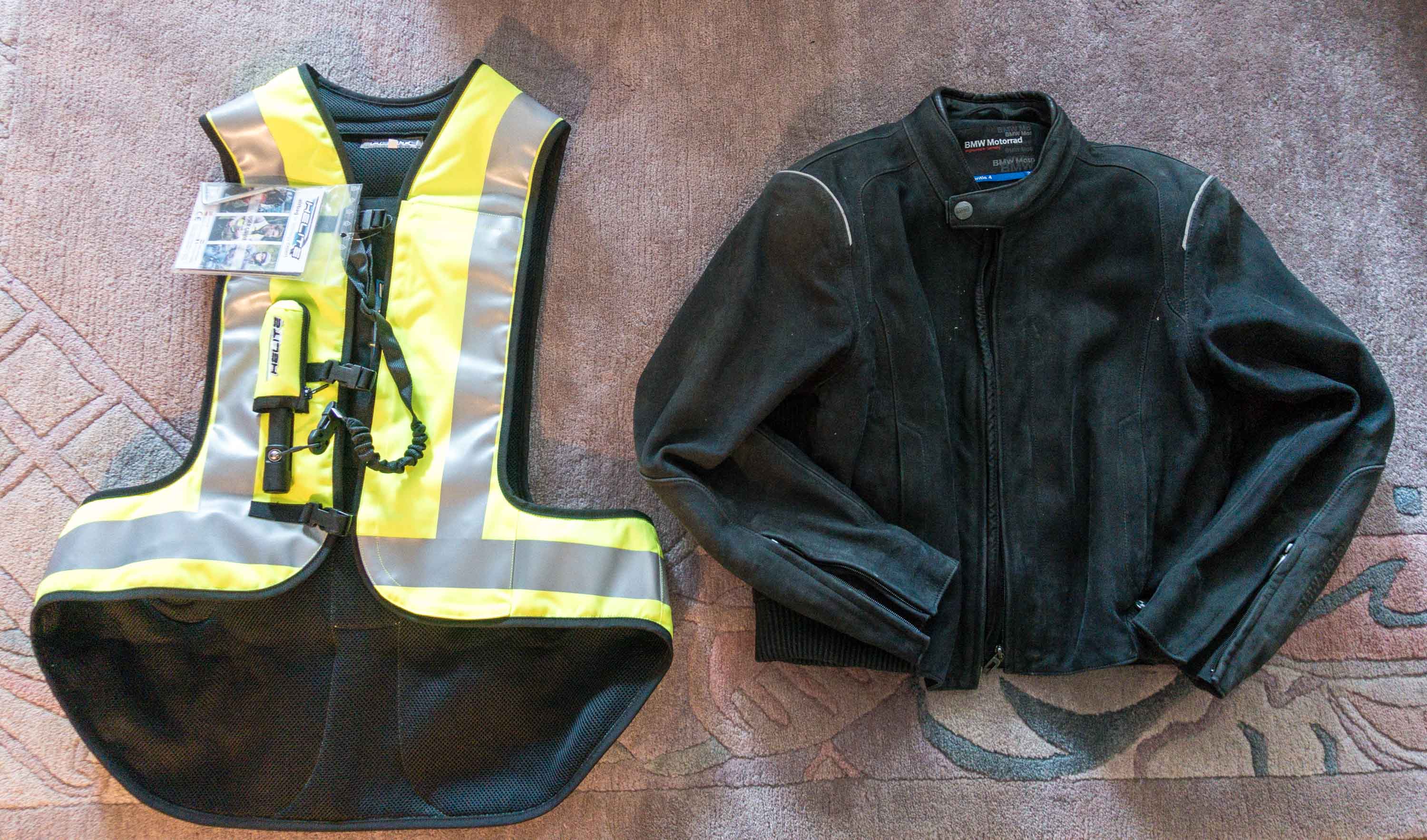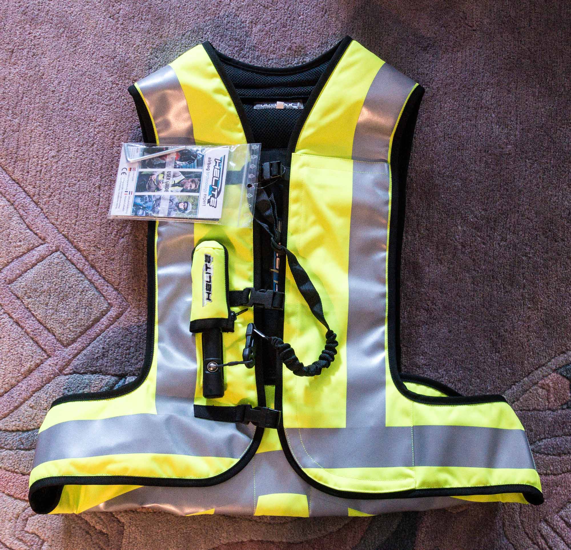 Was mich auch erstaunt hat: Man spürt die Helite-Weste beim Tragen praktisch nicht, also da trägt nichts auf oder stört. Auch meine Bedenken wegen der Reissleine um den Airbag auszulösen sind unbegründet, ich habe da mal dran gezogen, so wie wenn man vergessen würde, dass da etwas ist und das erträgt die Weste locker. Da geht also nichts aus Versehen einfach so los. Super!