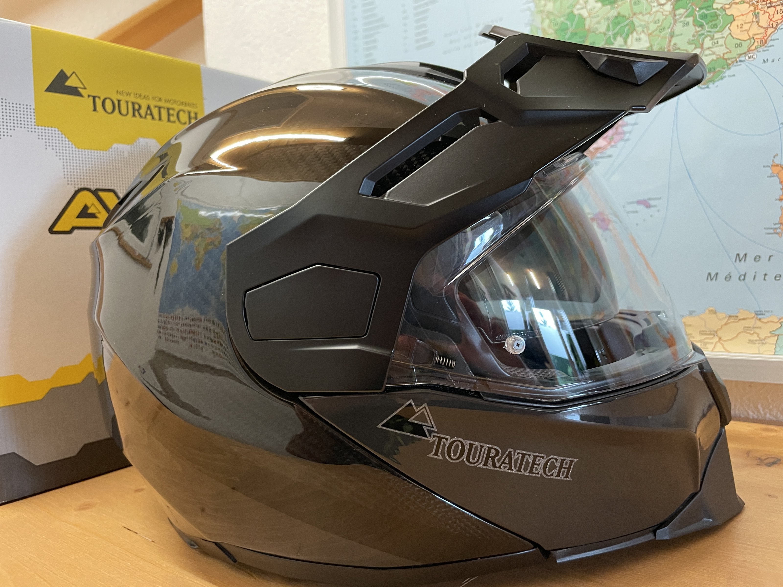 Biete einen fast neuen Helm Touratech Aventuro Traveller Carbon in Größe L. Hab den Helm im Dezember gekauft. Leider hat sich auf den ersten Fahrten gezeigt, dass ich ihn ne Nummer größer brauche. Rechnungskopie lege ich bei. Hat noch keine größere Tour hinter sich, sieht aus wie neu. Wird mit unbenutztem Pinlock und allem Zubehör ( Kamerahalter, Anpassungspads, Schildverlängerung und Beutel ) in OVP geliefert.