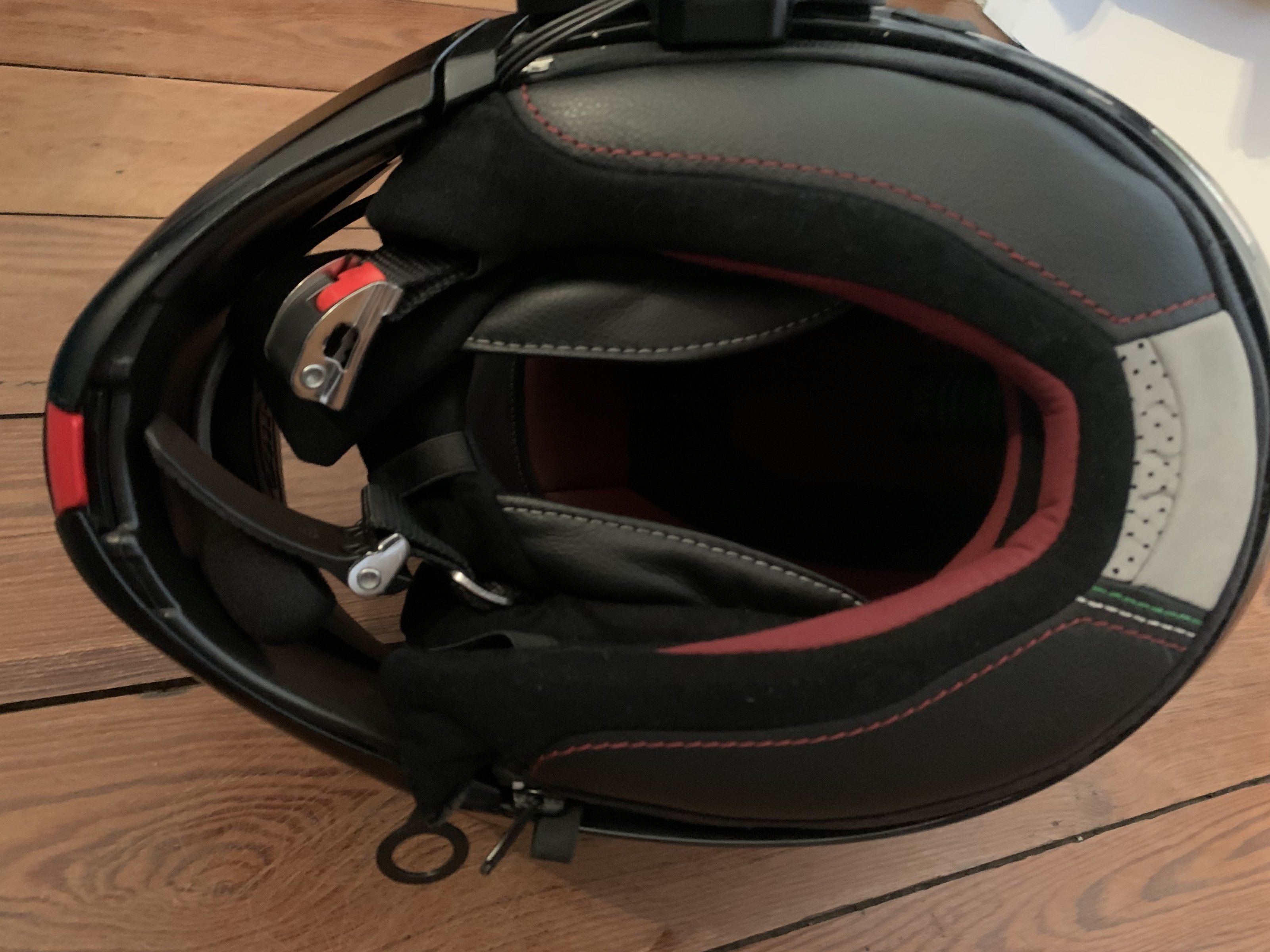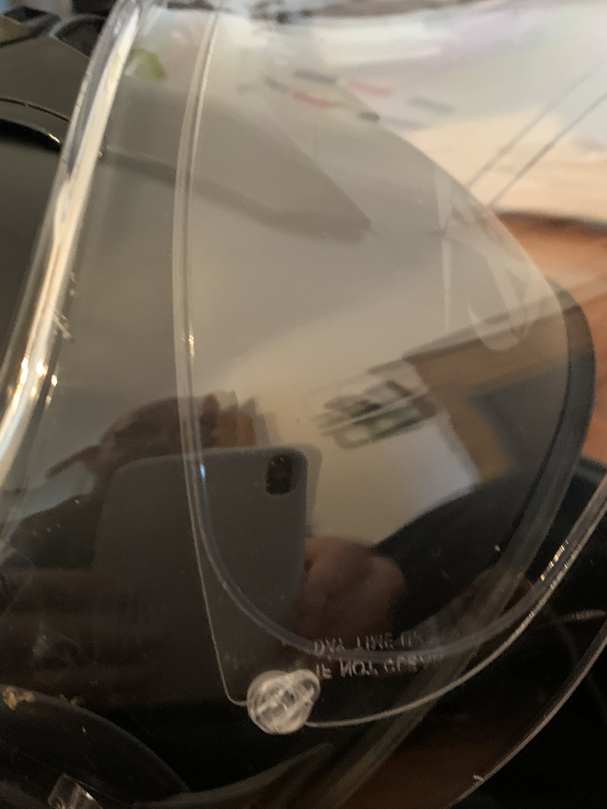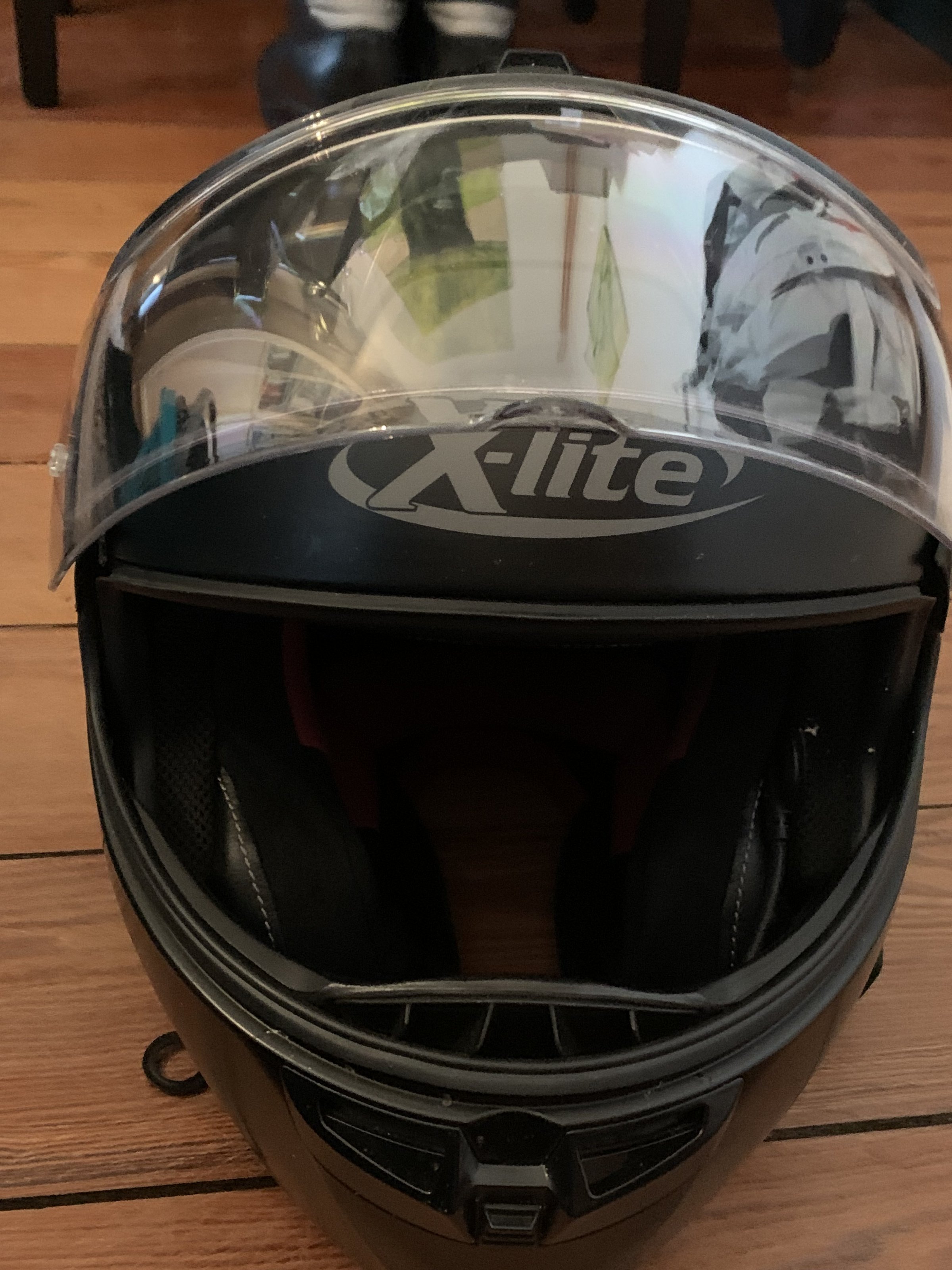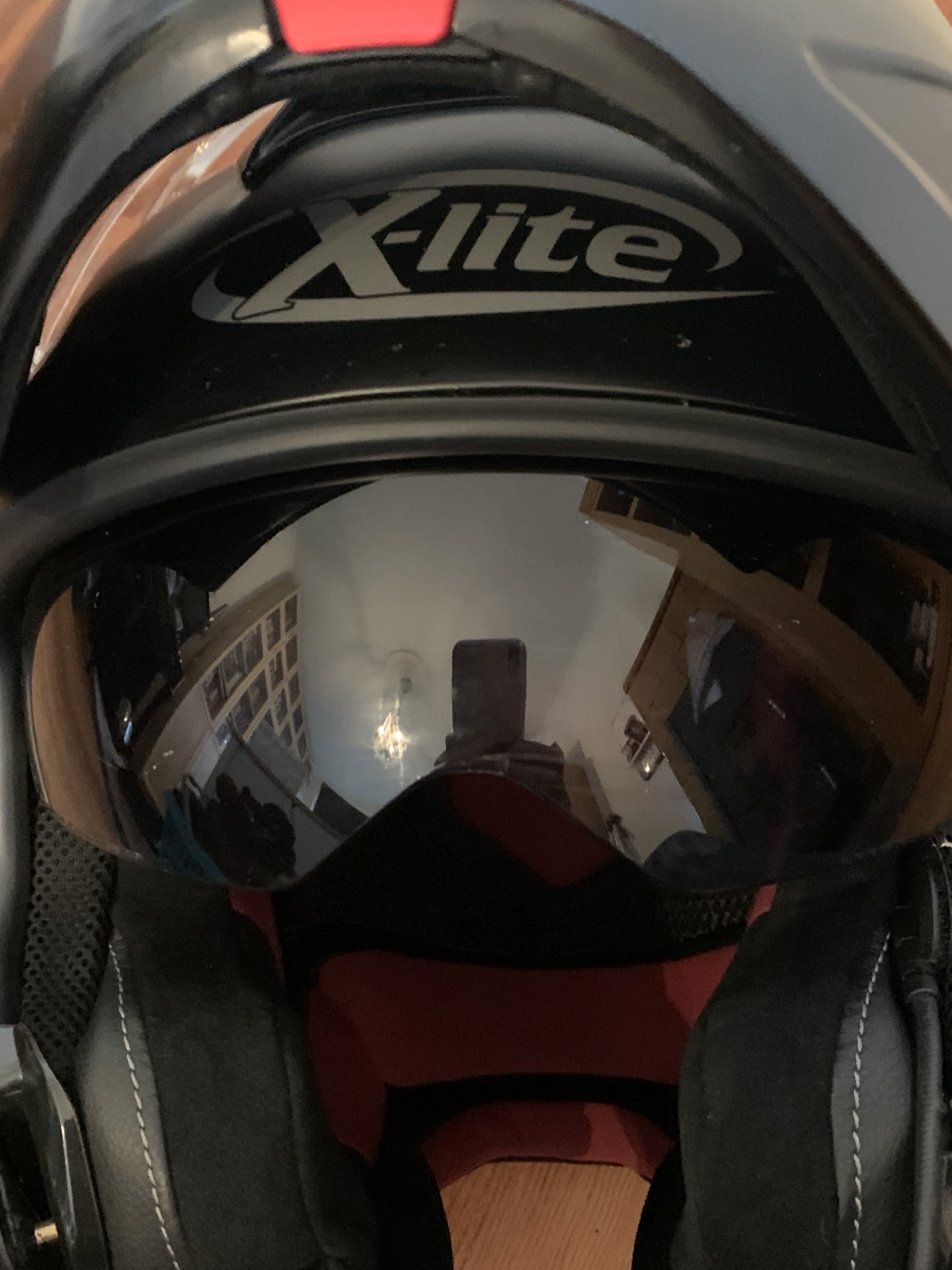 Dieser Helm ist wenig genutzt und unfallfrei. Das Visier ist ein Doppelvisier als Antibeschlagschutz.