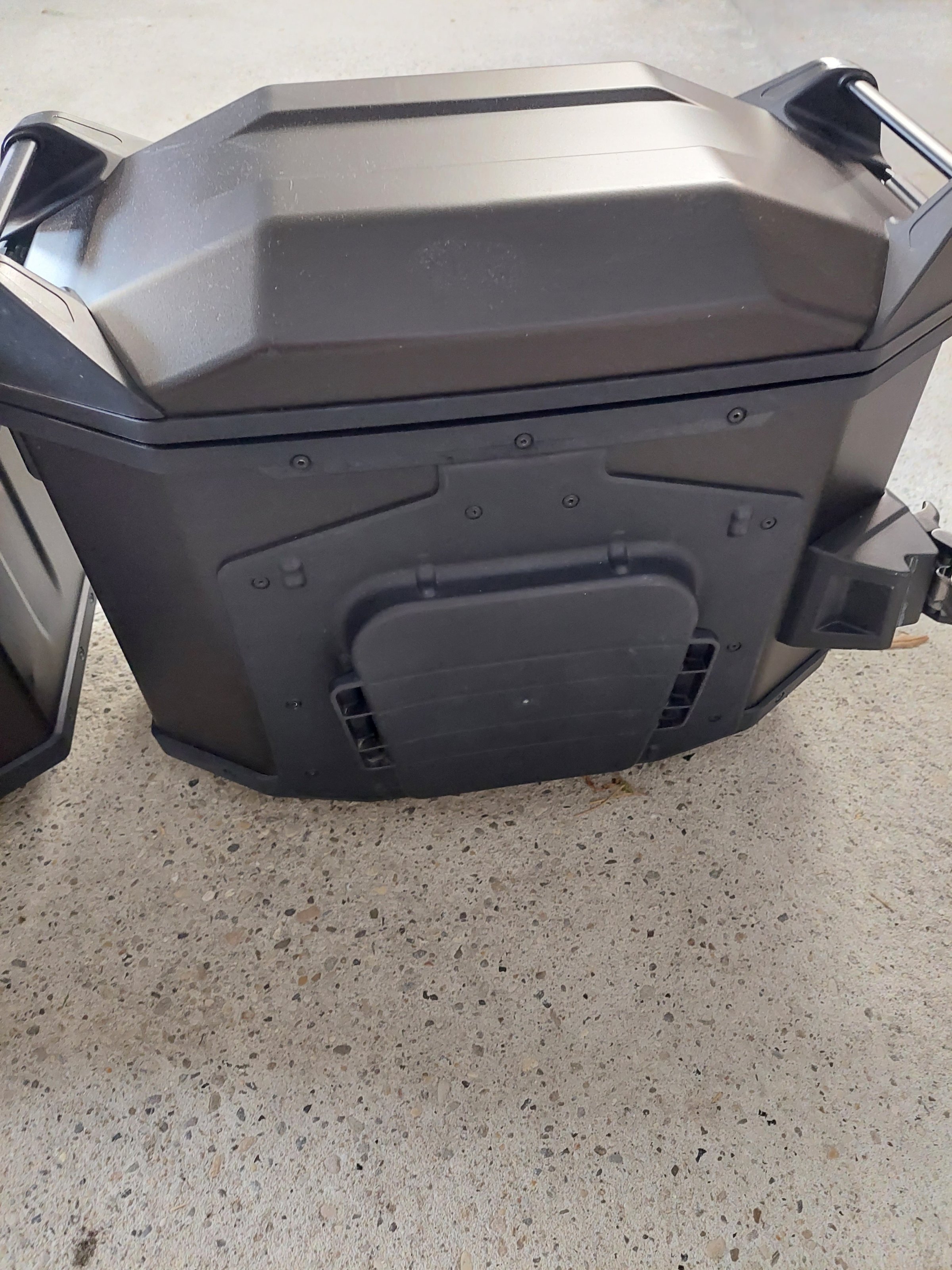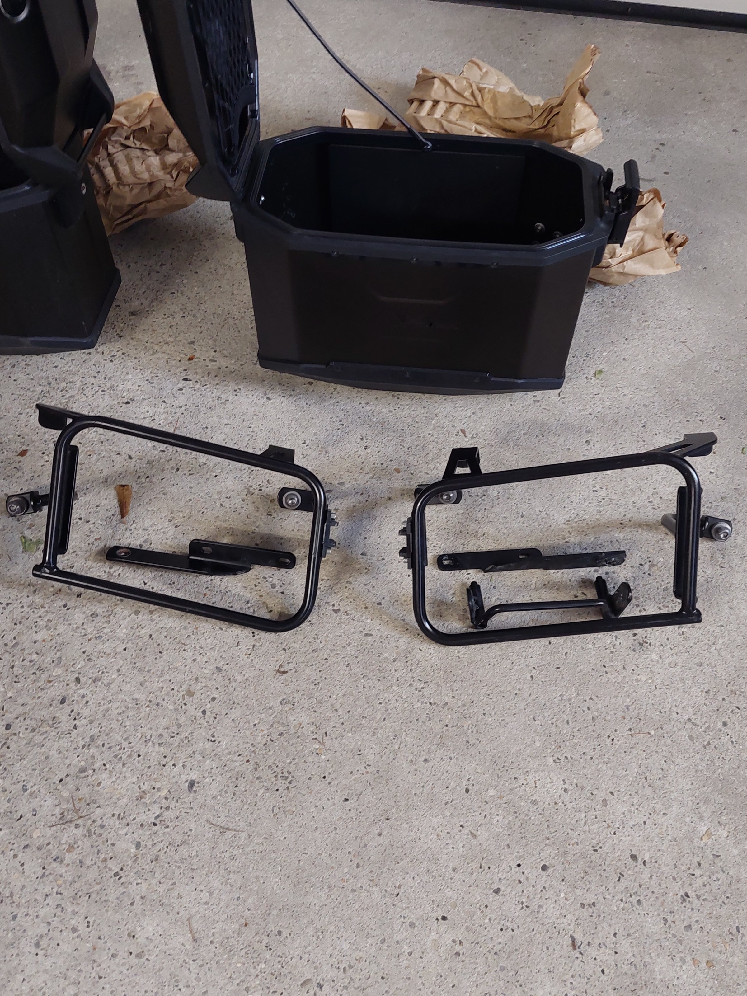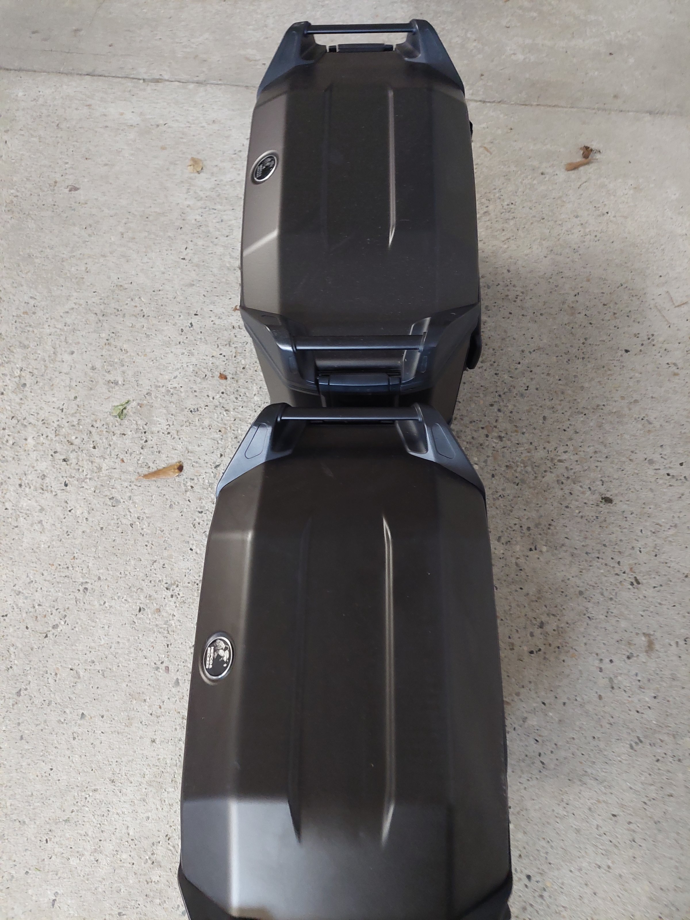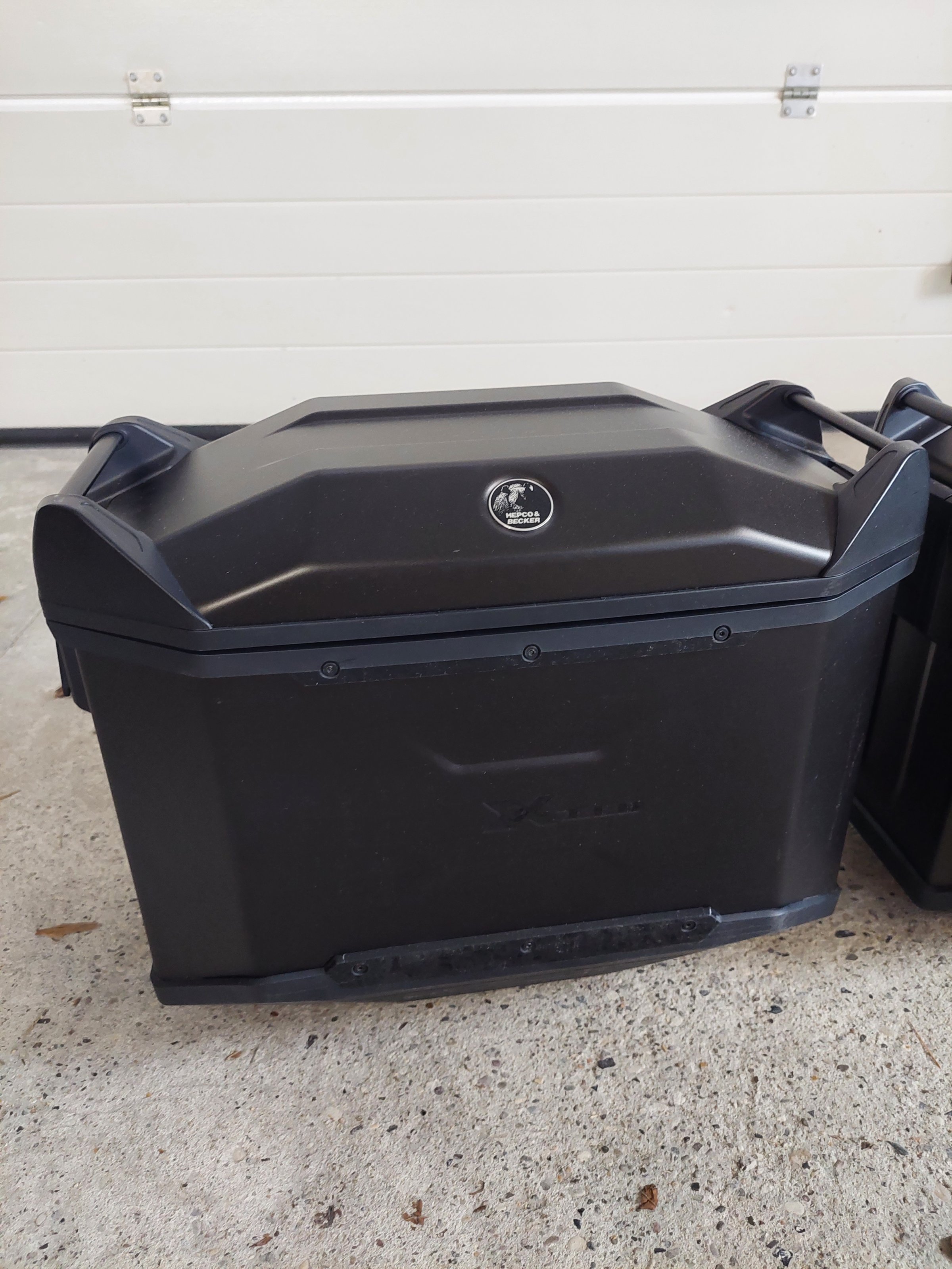 Biete einen schwarzen 38l Alu Koffersatz inkl Trägersystem mit Schnellverschlüssen von H&B an. Bei einem Deckel ist an der Seite ein Kratzer sonst Top. Im Deckel sind Netze.