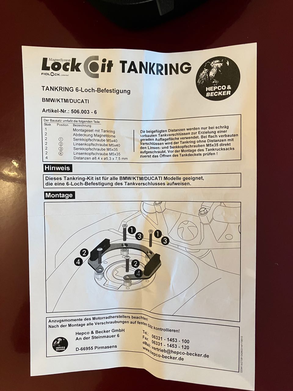 Universal Tankring Lock-it 6 Loch Befestigung für BMW, KTM, Ducati
