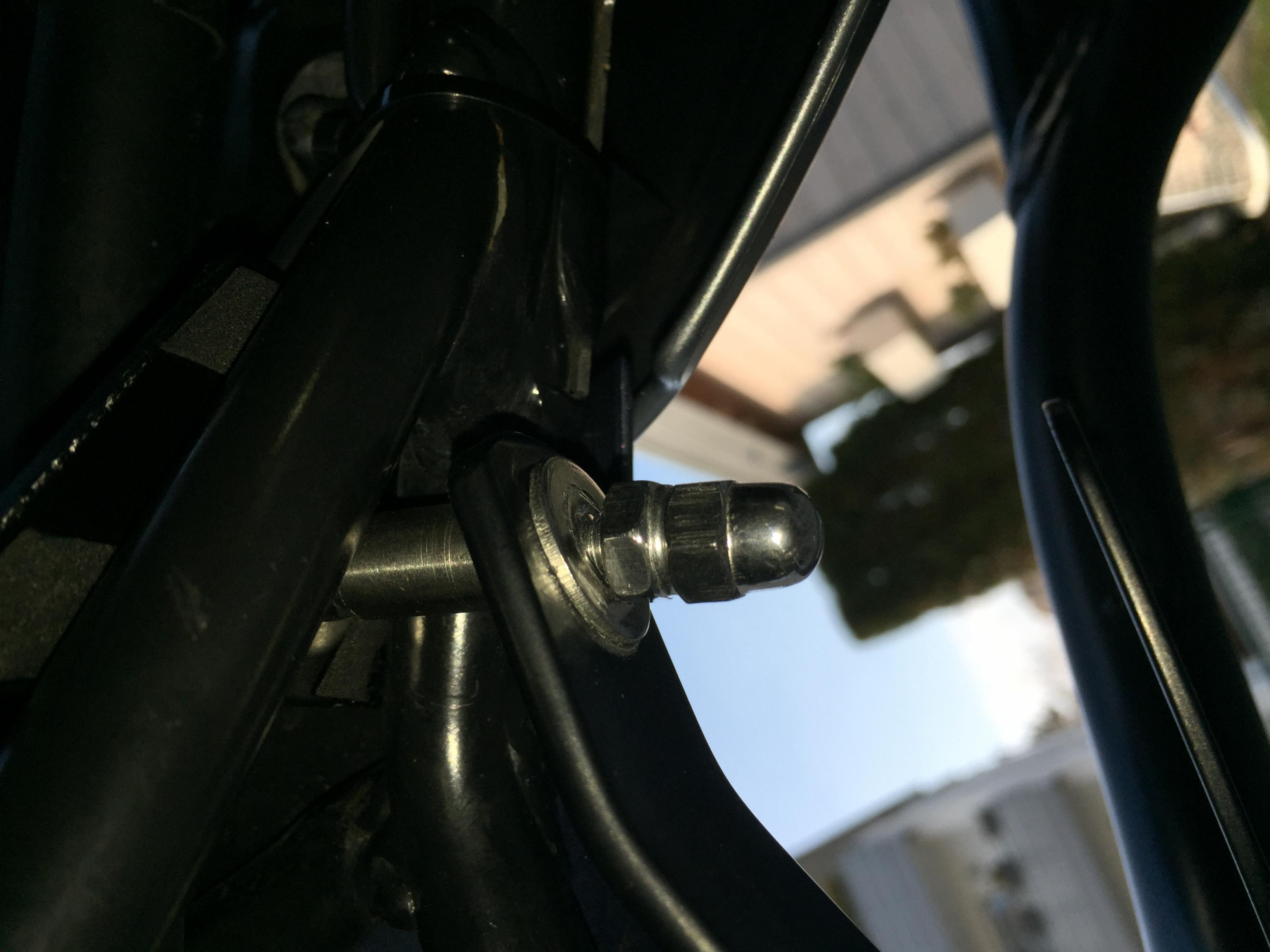 Dieser wird dann lediglich mit einer Schraube und Mutter am Rahmen in einem vorbereiteten Loch befestigt.