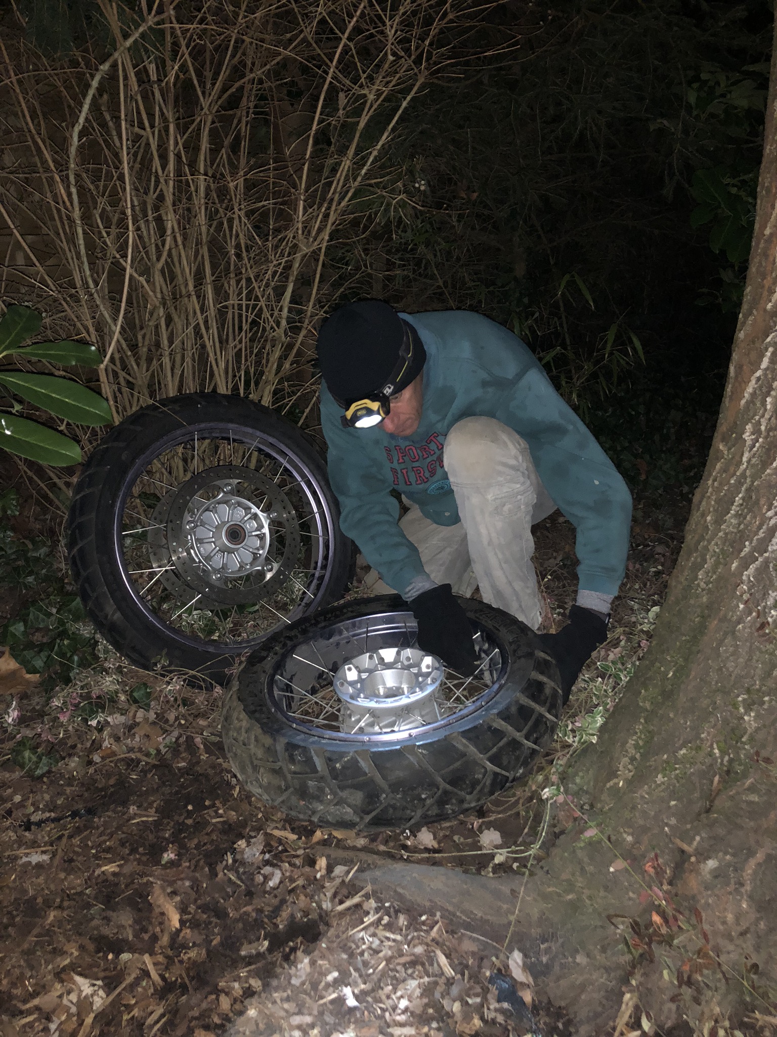 Ich war heute mit dem Rad und Hund unterwegs und kurz vor Schluß waren am Gebüsch hinter der Total Tankstelle Richtung Rauenberg 2 Osteuropäer an einem Vorderrad und Hinterrad am rummachen. Das zugehörige Moped fehlte.