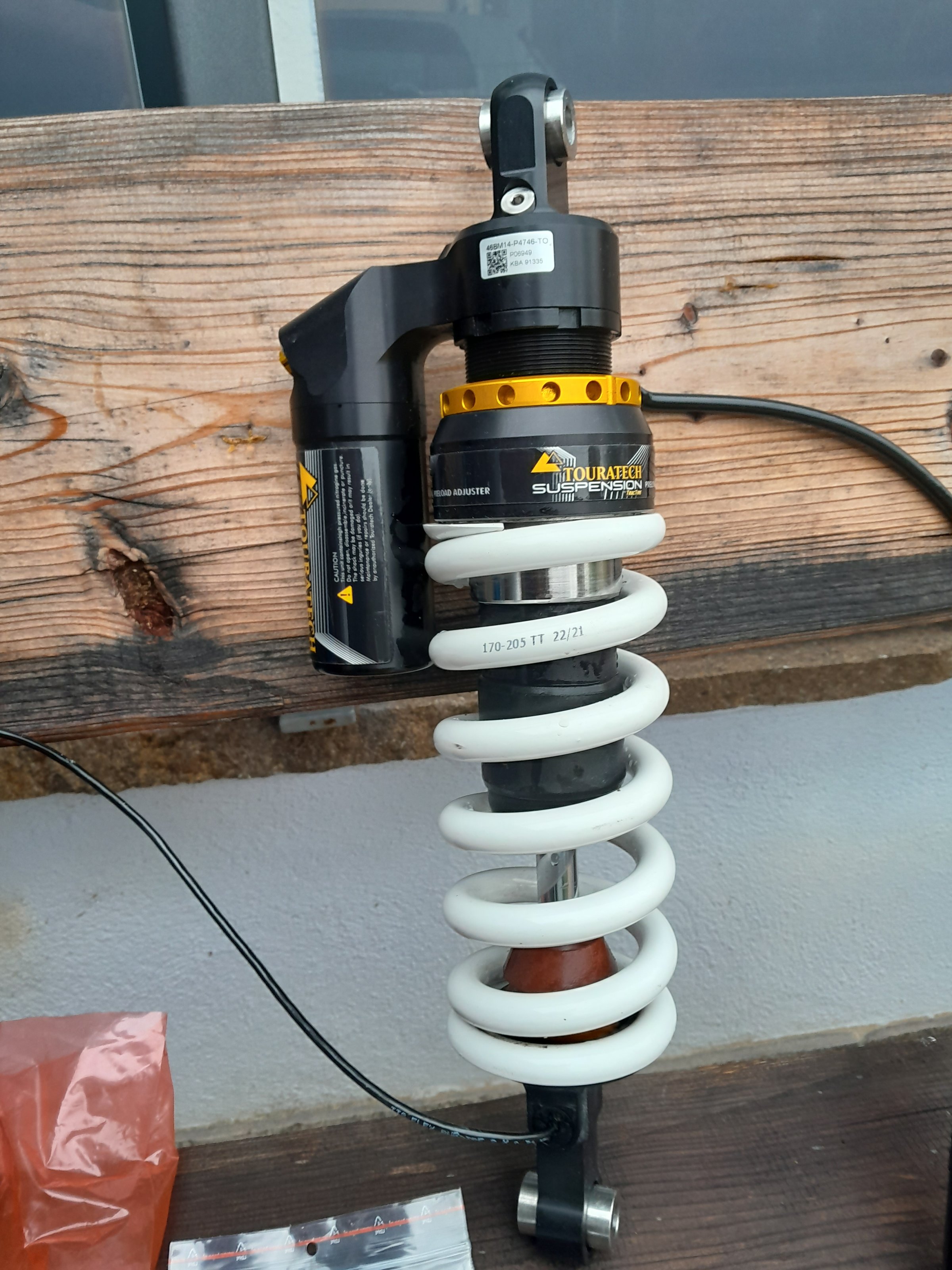 ich habe ein hinteres TT-Federbein - DDA / Plug & Travel für BMW R 1200GSA (LC) 2013 – 2016 übrig; nicht zu verwechseln mit dem Nachfolger DSA EVO. Das Federbein hat erst ca. 5 Tkm abgeleistet, ist also praktisch neuwertig und ist mit einer härteren Feder auf mein erhöhtes Kampfgewicht (abfahrbereite 125 kg) abgestimmt. Das Teil passt mMn problemlos auch in eine Standard-GS, hier nennt sich das bei BMW dann Sportfederbein (längerer Federweg; dies bitte uU beim