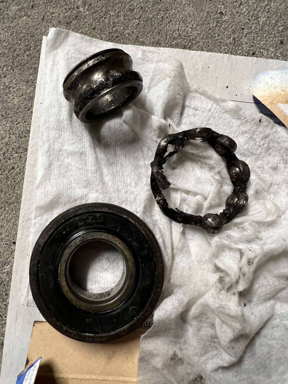 eine Buchse war abgerissen, ein Radlager zerrissen, und die Dichtung des anderes hatte Löcher