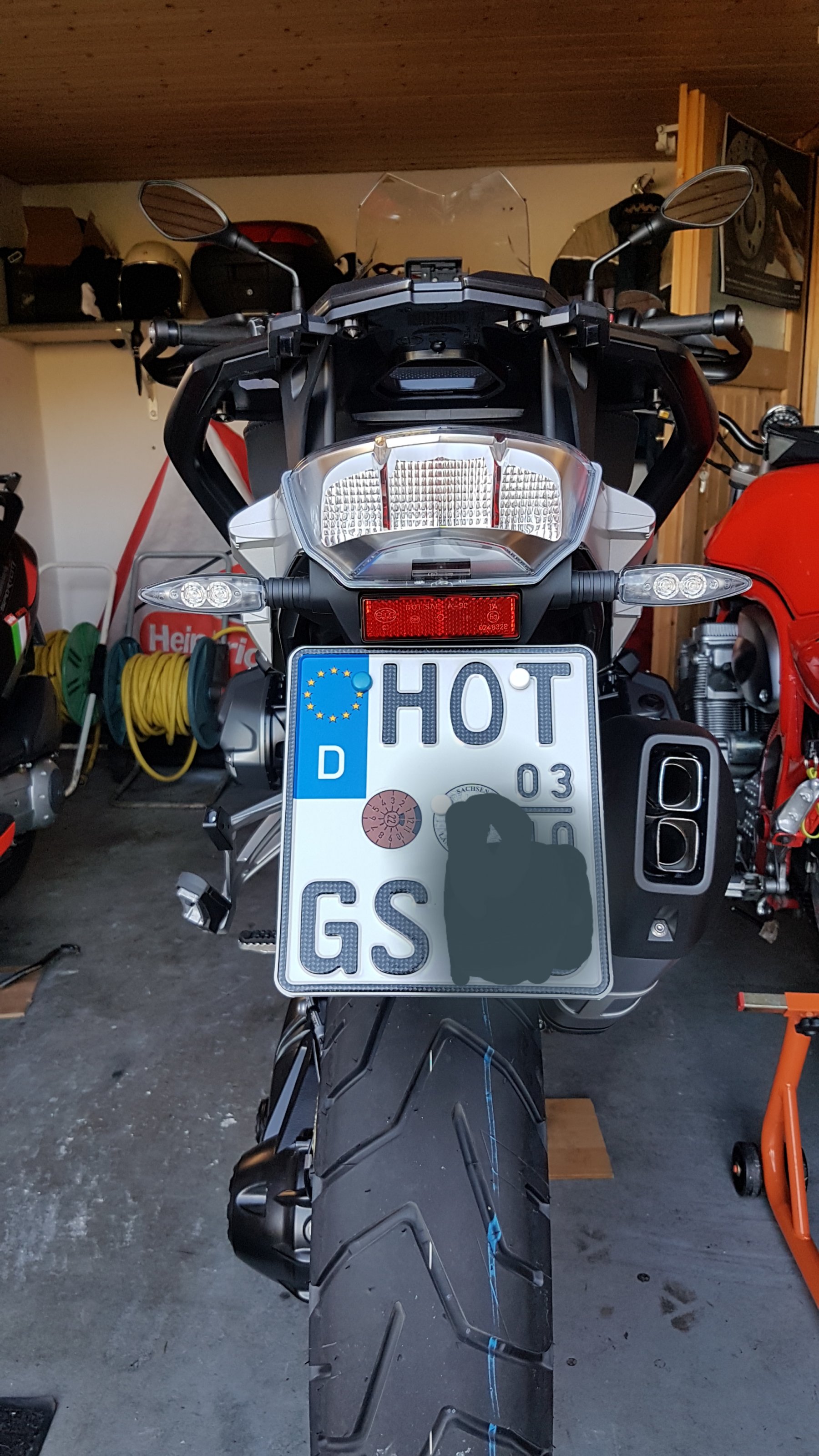 Es steht natürlich jedem frei, zum :) zu fahren um dieses zu makeln. Ich habe heute nochmals meine GS auf den Hauptständer gestellt und von hinten geschaut. Mir ist aufgefallen, dass man nur durch zwei / drei Zentimeter seitlich verschobener Sichtlinie links wie rechts meint, dass etwas nicht in Flucht ist.
