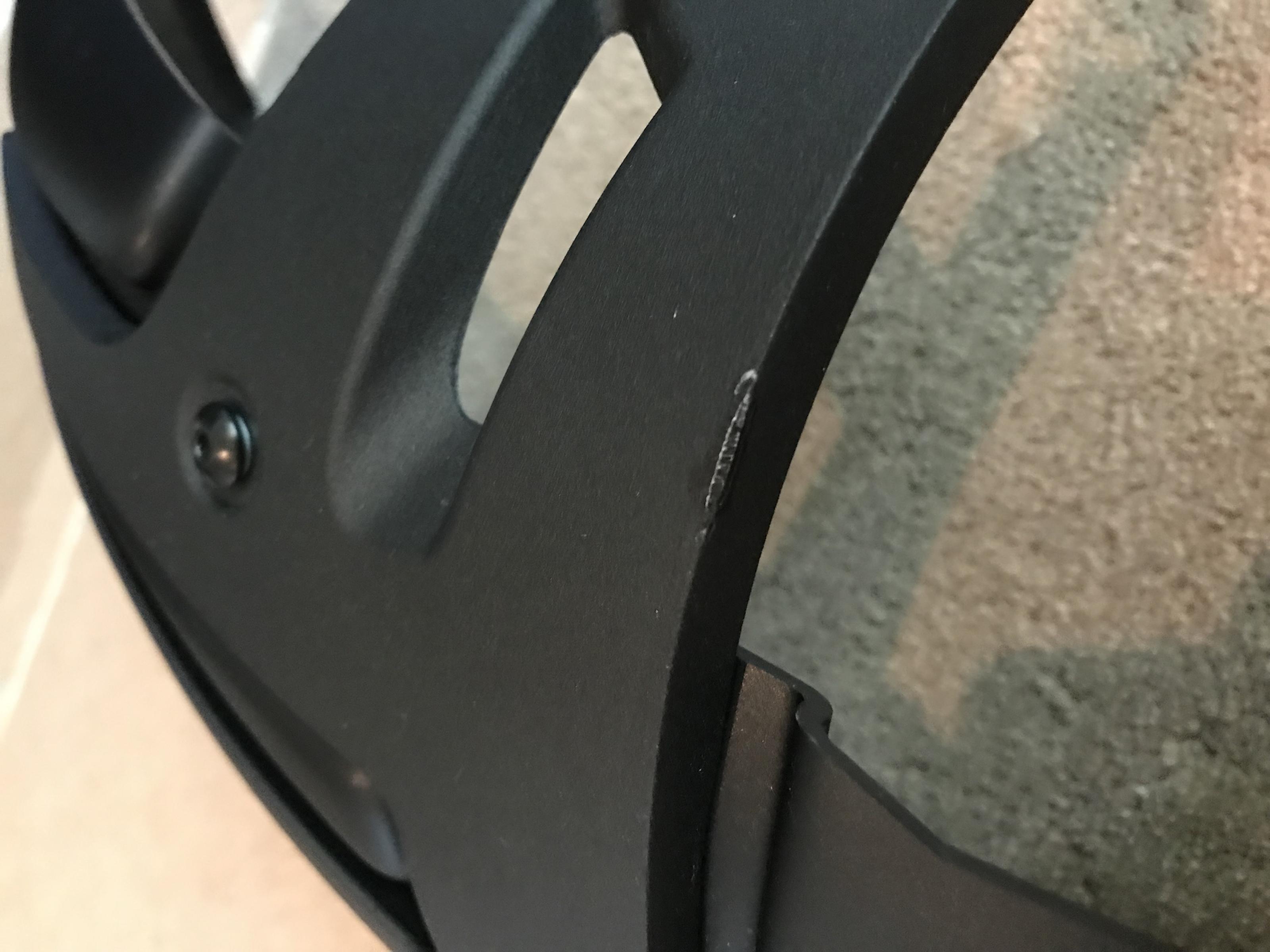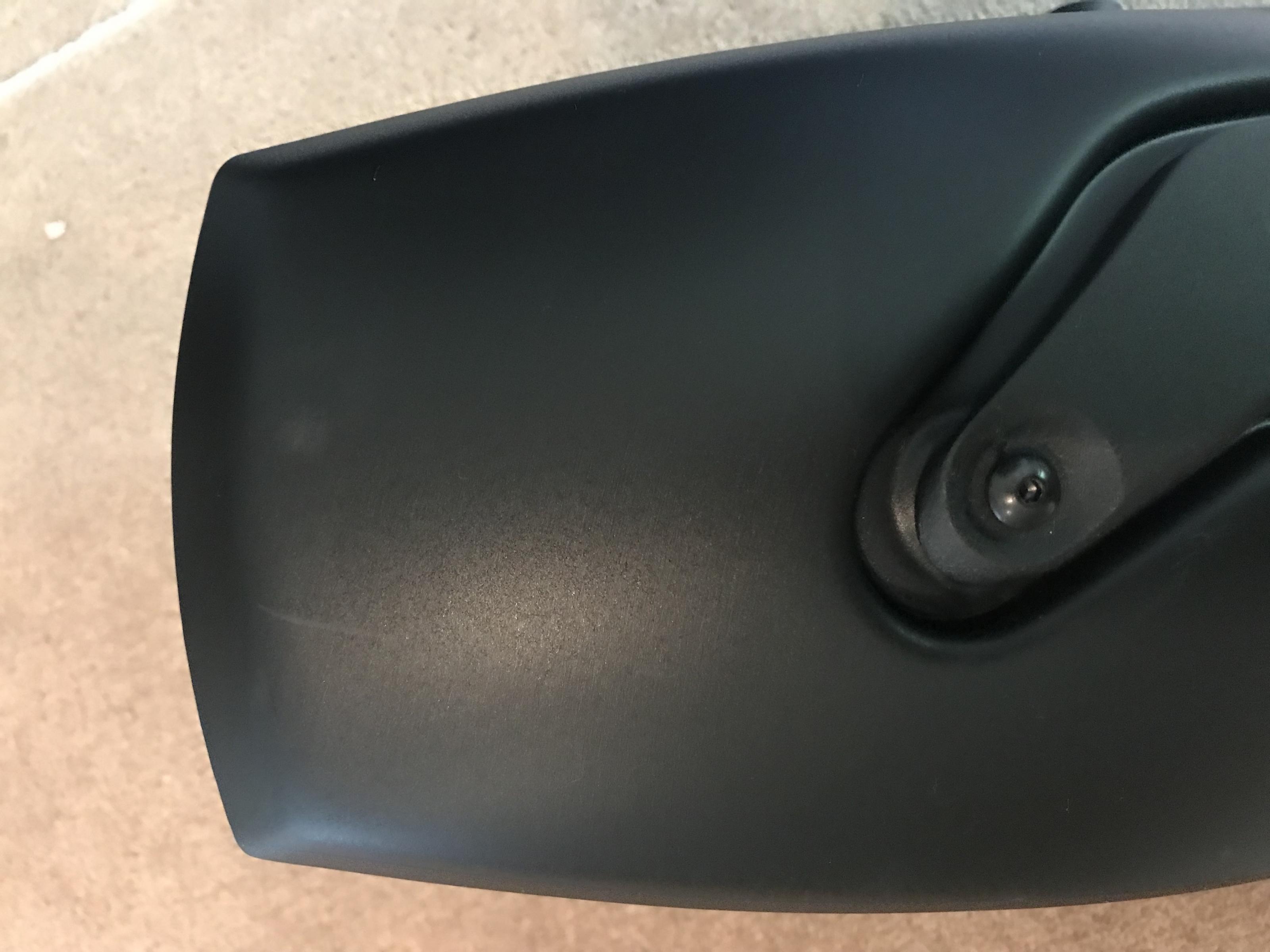 Ich habe 2 Lagerspuren ausgemacht (s. auch Fotos) : kleine Macke im Metallarm und minimalster Kratzer (eigentlich nicht der Rede wert) am hinteren Ende.
