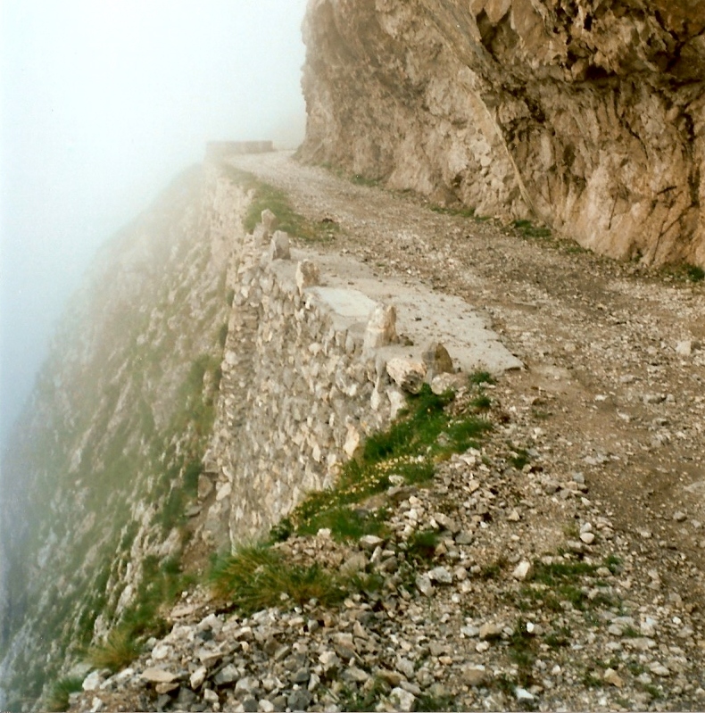 Wenn Du in Gegenrichtung zum Photo direkt an der Mauer lang fährst, weil Dir ein Auto entgegen kommt, siehst Du schon etwas vom hinter der Mauer lauernden Abgrund. Ist auf anderen Straßen aber nicht viel anders, auch z.B. in den Gorges du Tarn hat man nur ein niedriges Mäuerchen neben sich, auf der Assietta, der Auffahrt zum Dalsnibba und vielen anderen Straßen nichtmal das ;).