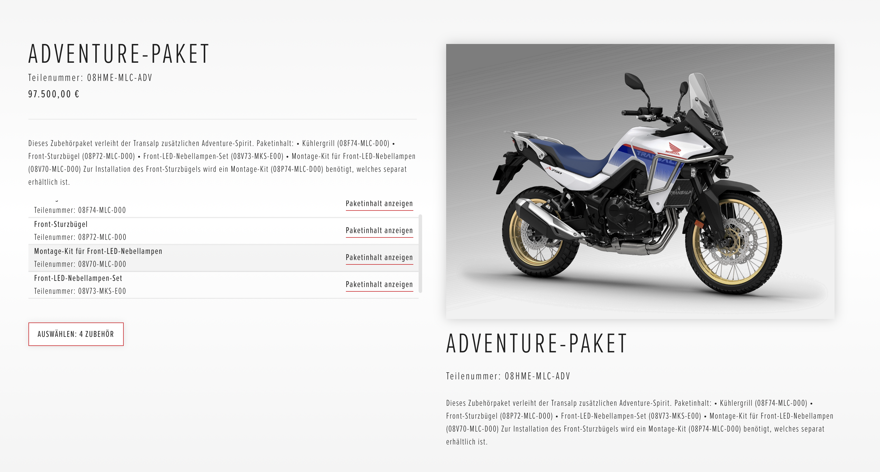Der Programmierer kommt aus Polen und hat alte Zloty eingetragenIch war gerade auf der Hondaseite und dachte mir, ich konfiguriere mir mal eine Transalp. Die Paketpreise sind schon mal BMW-tauglich. Blöde Inflation ;-)