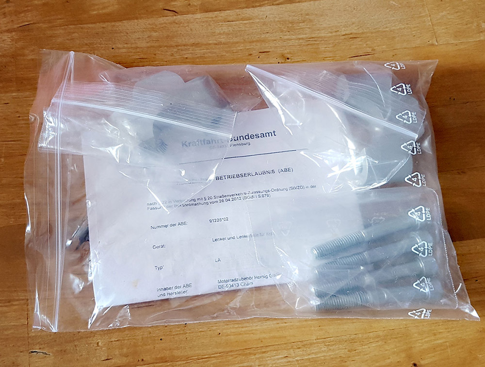 Wegen Fahrzeugwechsels biete ich eine 25mm Lenkererhöhung von Hornig. KBA-Nummer ist eingestanzt, dazu die ABE in Papierform und Kaufbeleg aus 10/2016.