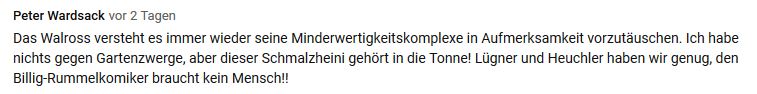 Unabhängig davon, ob ich ihn mag oder auch nicht, finde ich es unerträglich, jemanden, den man nicht persönlich kennt, zu verdammen, als geborenes A.r.s.c.h.l.o.c.h hinzustellen und sich über ihn zu ereifern! (nochdazu, wenn man die Sendungen mit ihm angeblich ja gar nicht anschaut