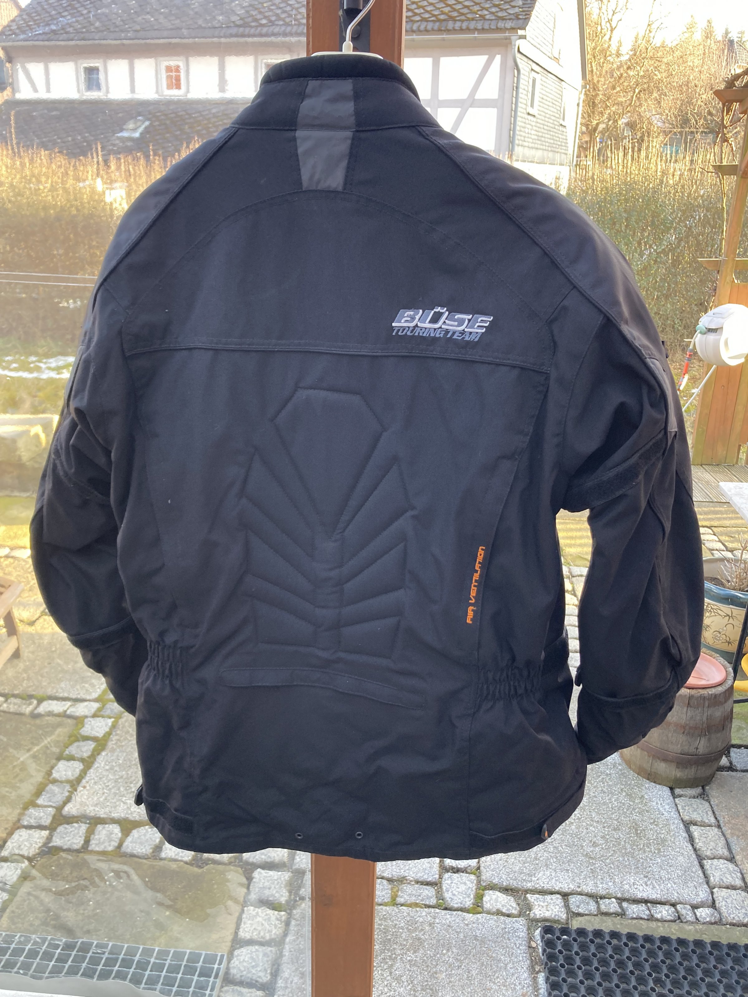 Die Jacke ist natürlich schwarz, dass Foto täuscht. Sie hat jede Menge Belüftungen und ist auch im Sommer gut tragbar 120€