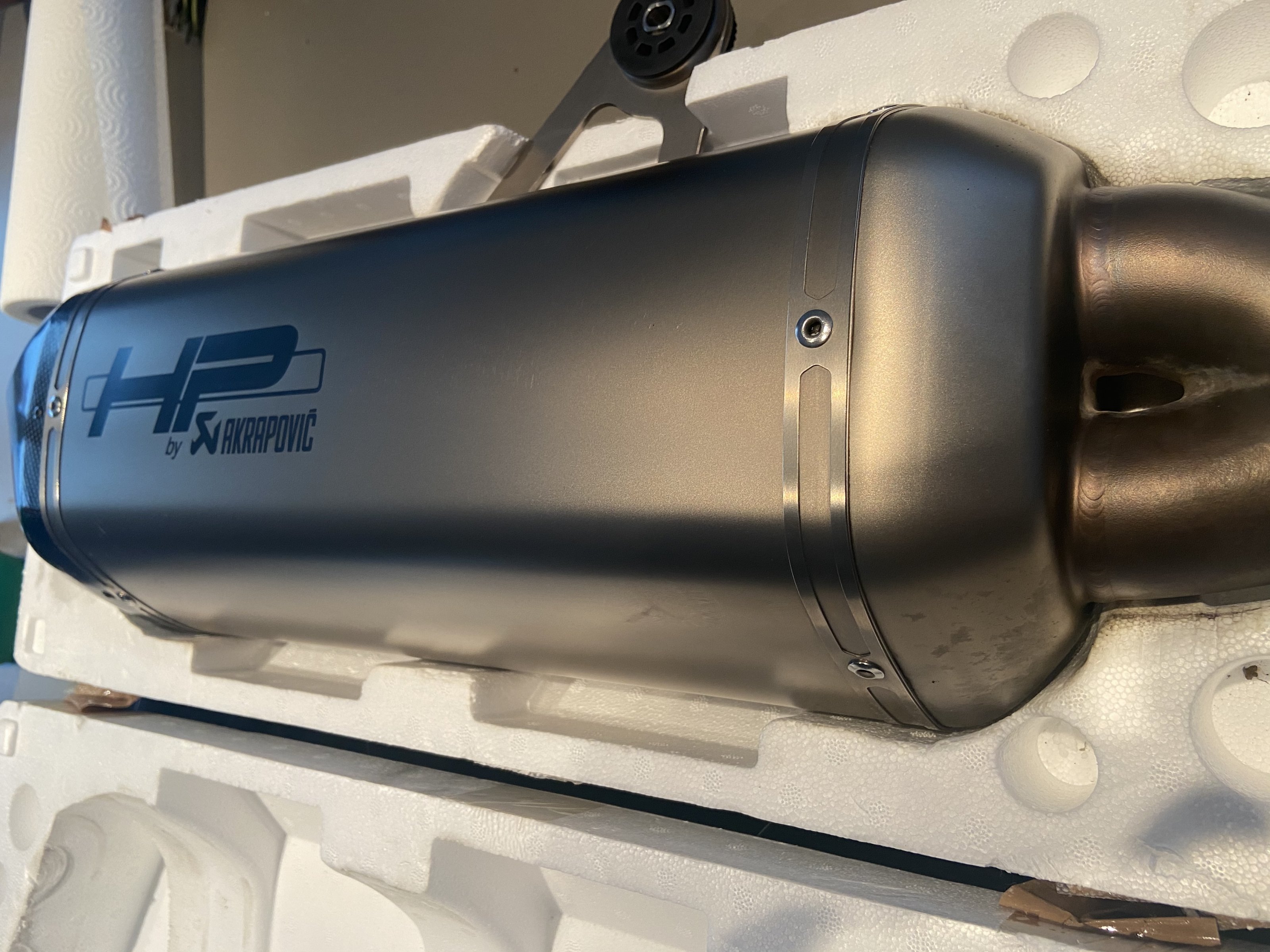 Verkaufe meinen HP Akrapovic von der 2014 1200 GS LC. Passend auch für ADV. Alle Befestigungsschellen, die Carbonabdeckung und die Bescheinigungen sind natürlich mit dabei. Der Topf hat normale Gebrauchsspuren, aber keine Dellen oder tiefe Kratzer. Flecken auf den Bildern sind nur Schmutz!